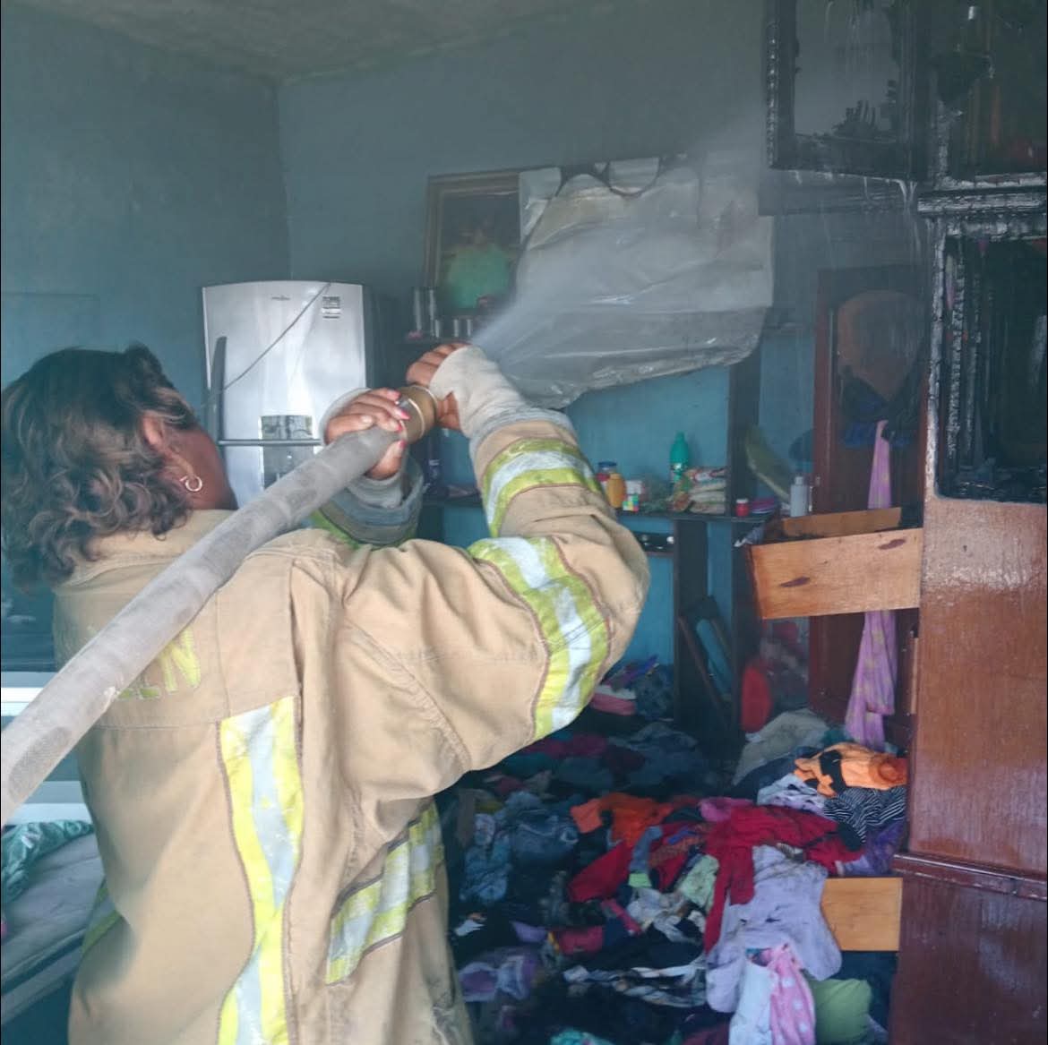 Los elementos del Cuerpo de Bomberos llegaron al lugar y lograron sofocar el incendio, y se evitó que el incendio se propagara a otras áreas de la vivienda.