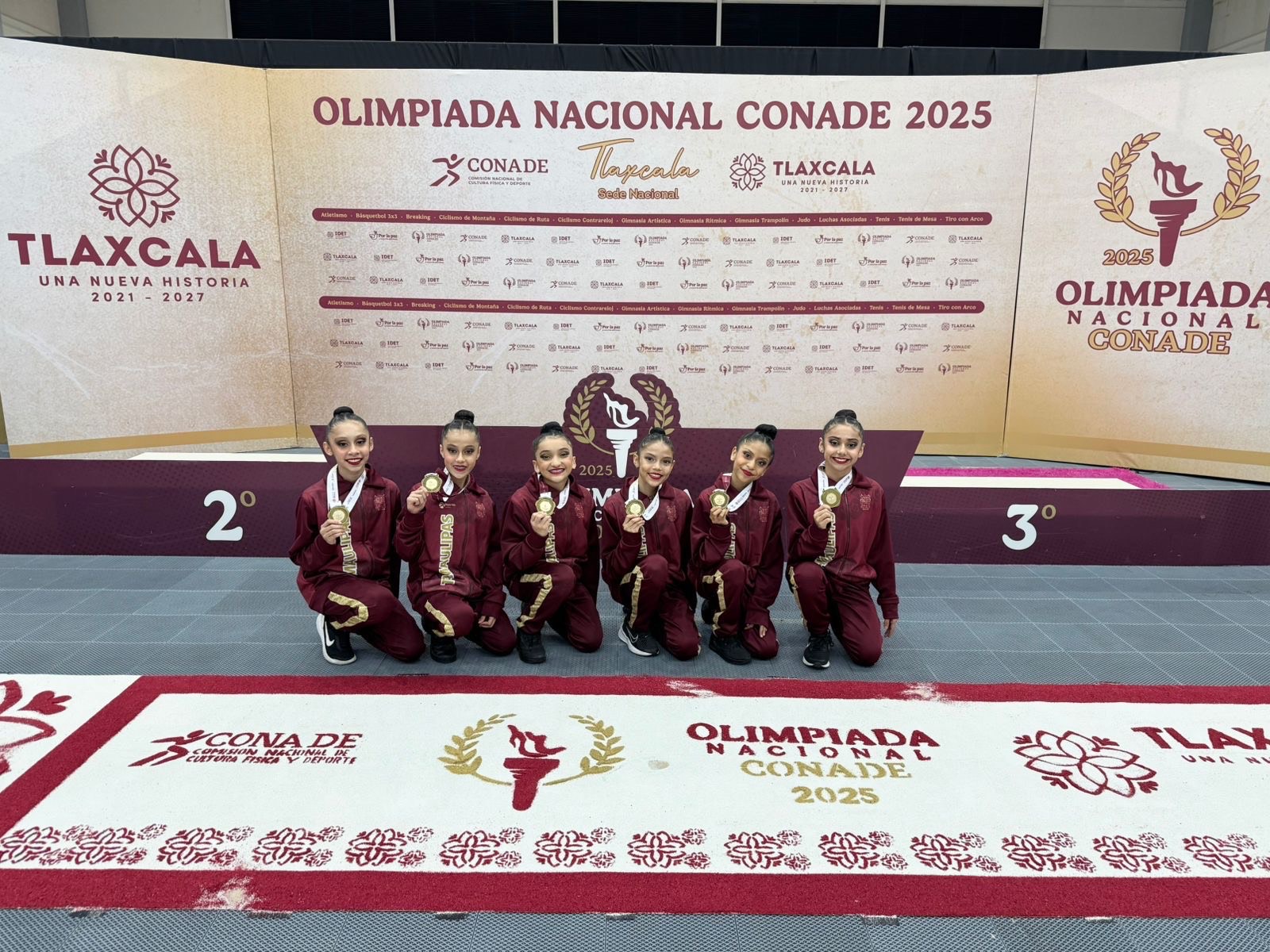 El equipo tamaulipeco estuvo integrado por María Regina Blanco, Mariann Valentina Ortega, Regina Zoé González, Ana Paula Pimentel, Renata Castillo y Ximena Ricárdez, quienes demostraron el fruto de su dedicación, disciplina y amor por este deporte.