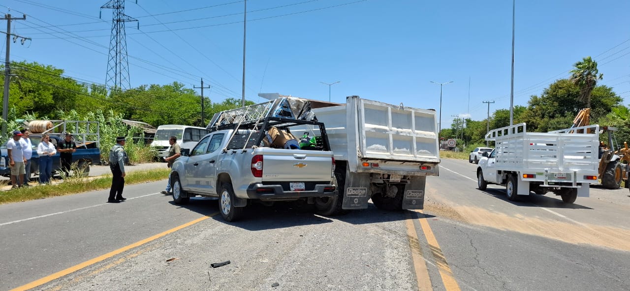 Al tratar de incorporarse a los carriles de circulación de sur a norte de la carretera Victoria Matamoros, a la altura del Polideportivo, el conductor de la camioneta no advirtió la presencia del camión de volteo.