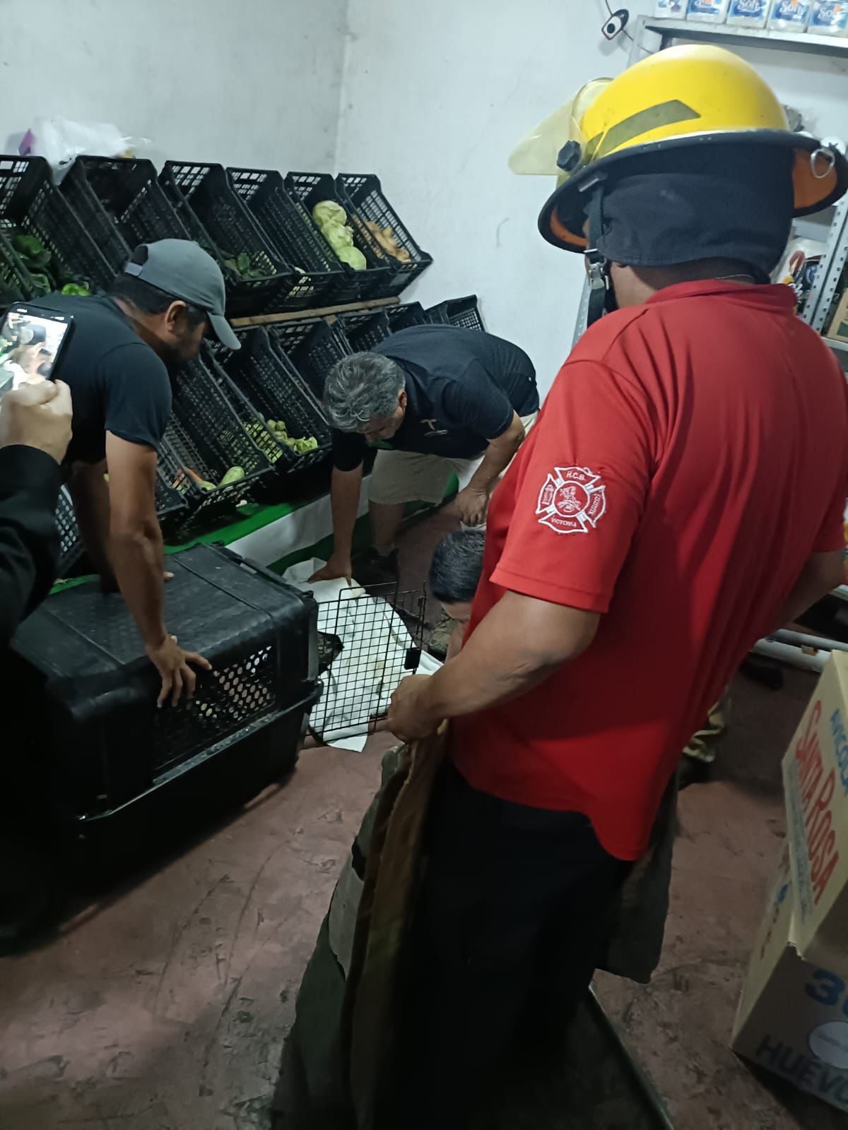 Al realizar tareas de verificación se confirmó la presencia del gato montés, que ya había descendido de un árbol y se encontraba en el interior de una frutería, por lo que los elementos del Cuerpo de Bomberos brindaron seguridad a la zona a la espera de la llegada del personal del Zoológico de Tamatán.