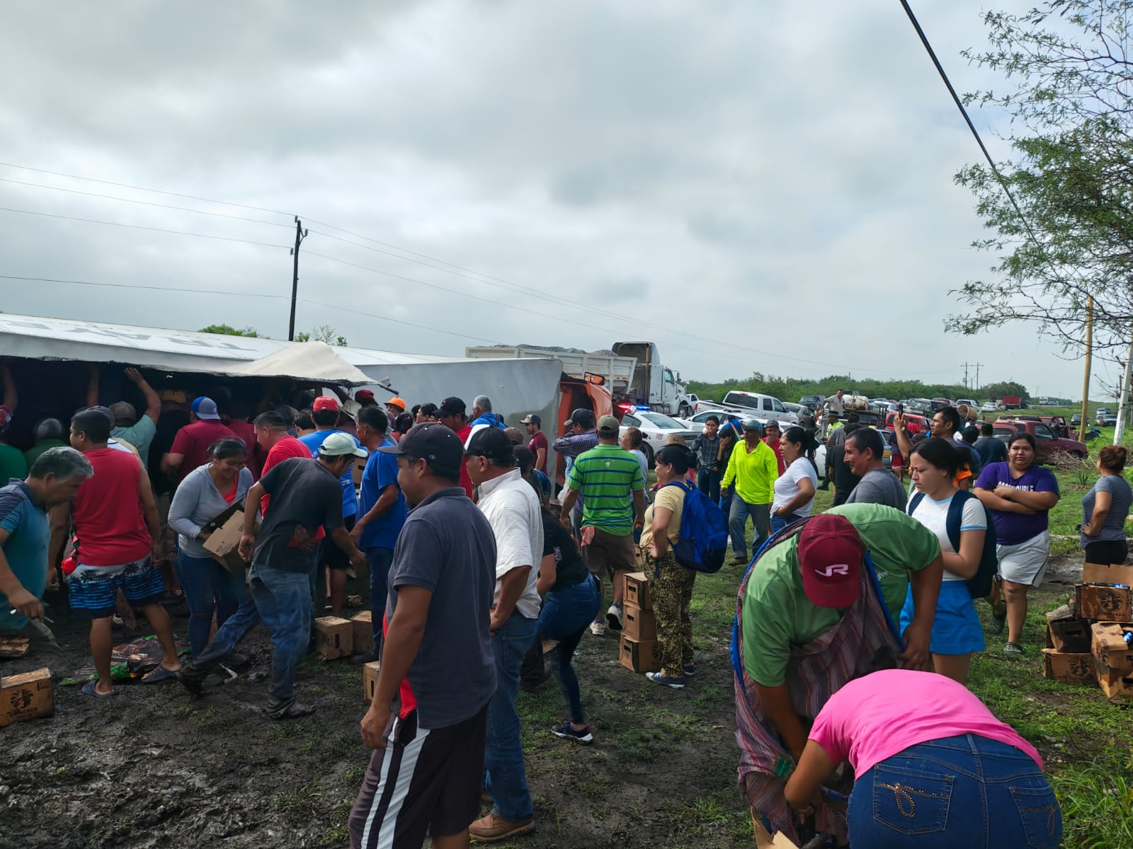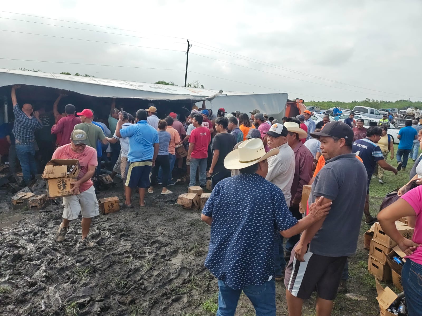 Ciudad Victoria, Tamaulipas (2 de junio de 2025).- Después de un fin de semana con “ley seca” debido a la elección judicial, esta mañana algunos habitantes de ejidos cercanos a esta Ciudad Capital hicieron su agosto al iniciar junio, ya que esta mañana se volcó un tráiler con dos contenedores cargado con varias toneladas de cerveza.