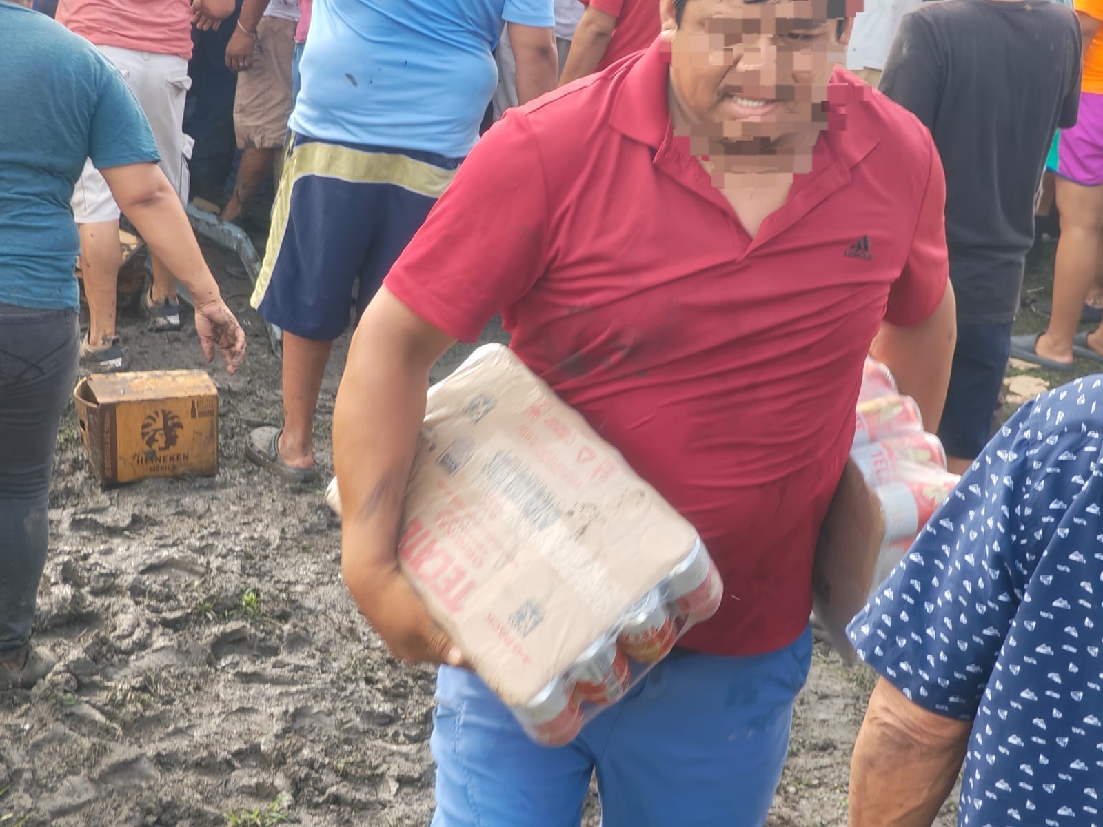Pese a que en el lugar se encontraban elementos de la Guardia Nacional una gran cantidad de de personas se llevaron la cerveza y en cuestión de minutos “vaciaron” el contenedor volcado.