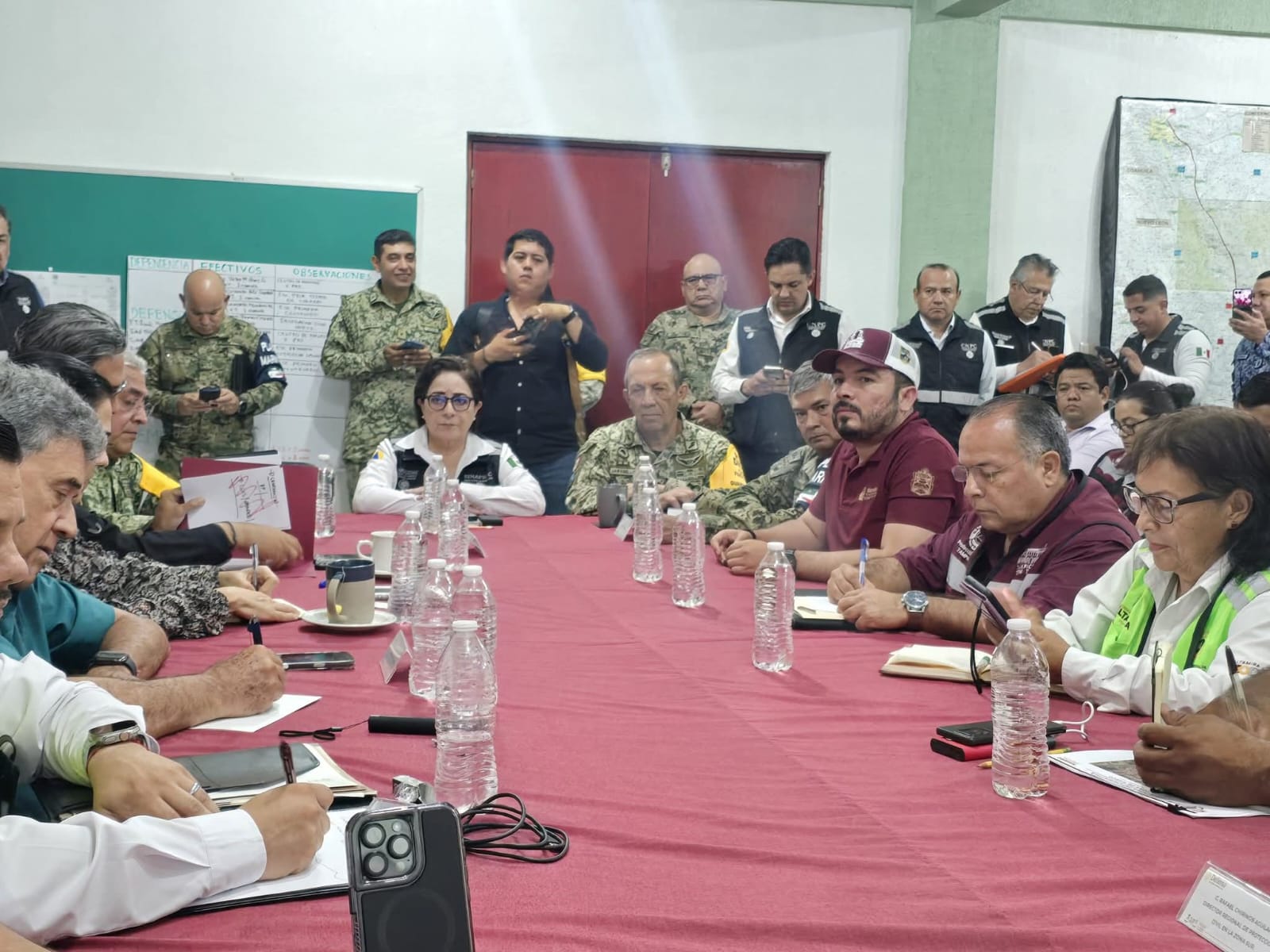 En una reunión en las instalaciones del 15/o Batallón de Infantería, a la que asistieron mandos de la Defensa, Secretaría de Marina, Guardia Nacional, personal de la Coordinación Estatal de Protección Civil, de la Secretaría de Recursos Hidráulicos, la alcaldesa de Tampico, Mónica Villarreal Anaya, y los alcaldes de Ciudad Madero y Altamira, Erasmo González Robledo y Armando Martínez Manríquez, respectivamente, se trazaron las estrategias de respuesta ante las lluvias de la tormenta tropical Barry.