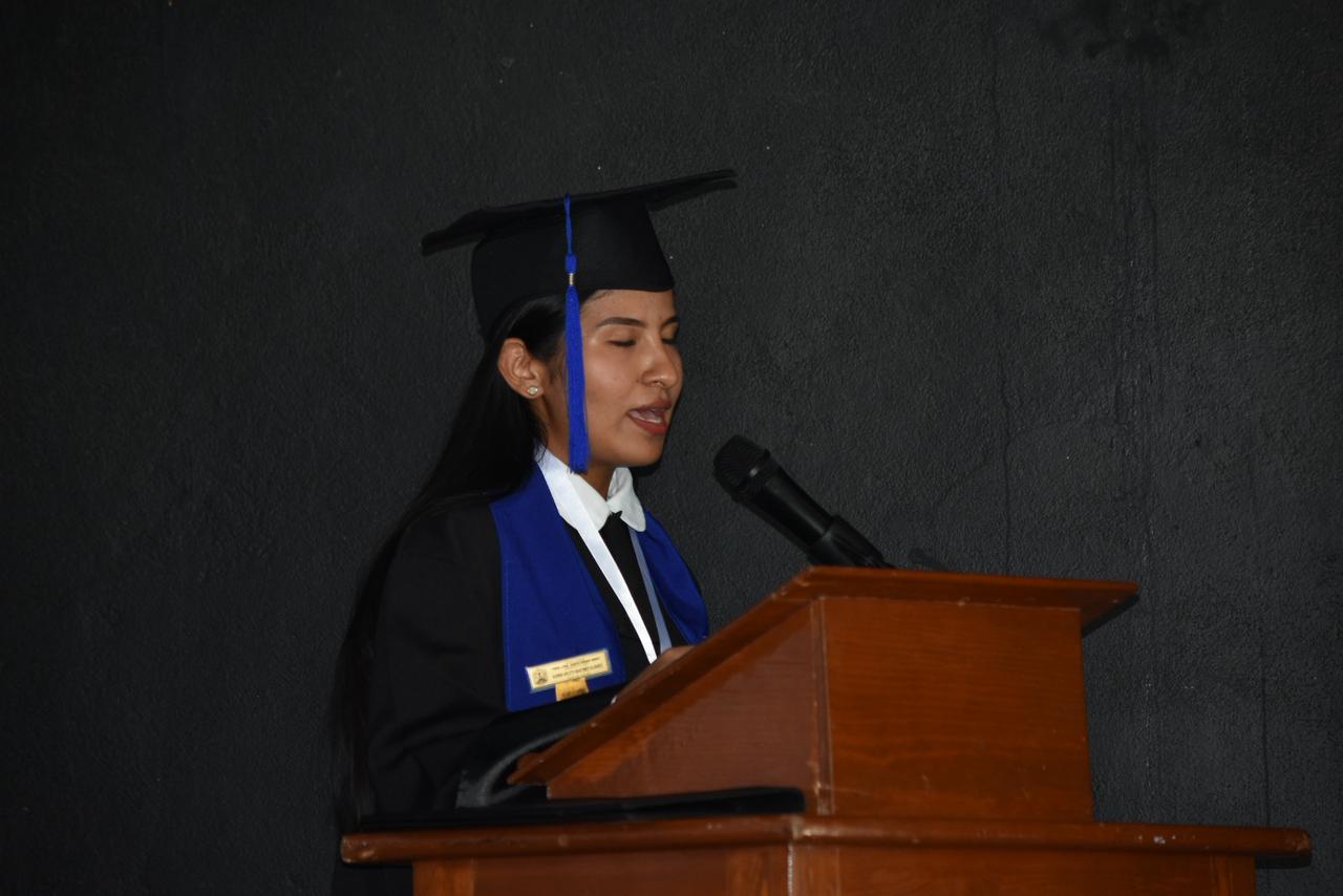 La egresada Karina Arlet Martínez Álvarez, en representación del alumnado, ofreció un emotivo discurso en el que agradeció a docentes, autoridades y padres de familia, y refrendó el compromiso de su generación con la transformación de la educación desde las aulas.