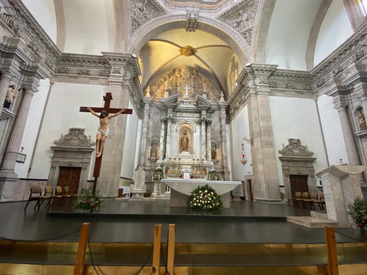 Mientras que el altar principal está diseñado en mármol de Carrara y está ubicado frente a la calle principal del retablo mayor.