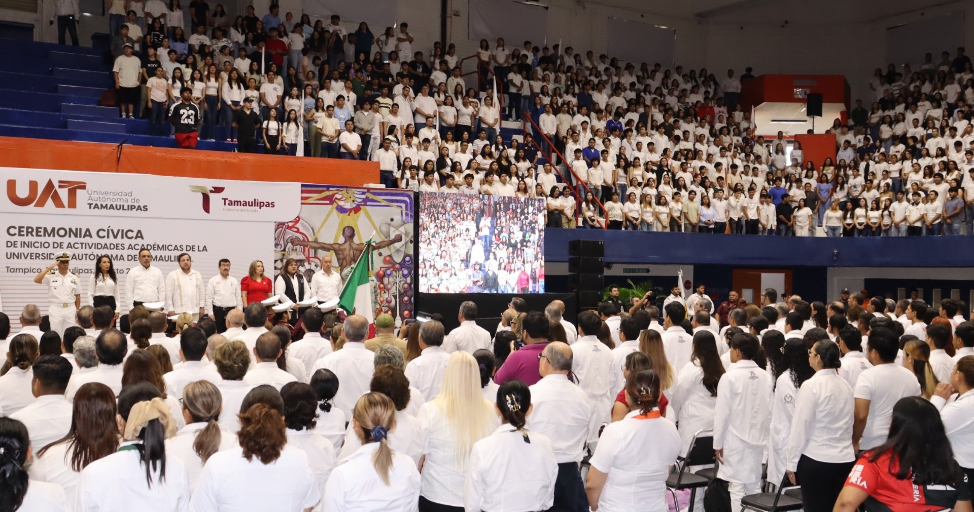 El rector de la Universidad Autónoma de Tamaulipas, Dámaso Anaya Alvarado, inauguró el ciclo escolar Otoño 2025, con la Ceremonia Cívica de Apertura de Actividades Académicas que presidió en el Gimnasio Multidisciplinario del Campus Tampico.