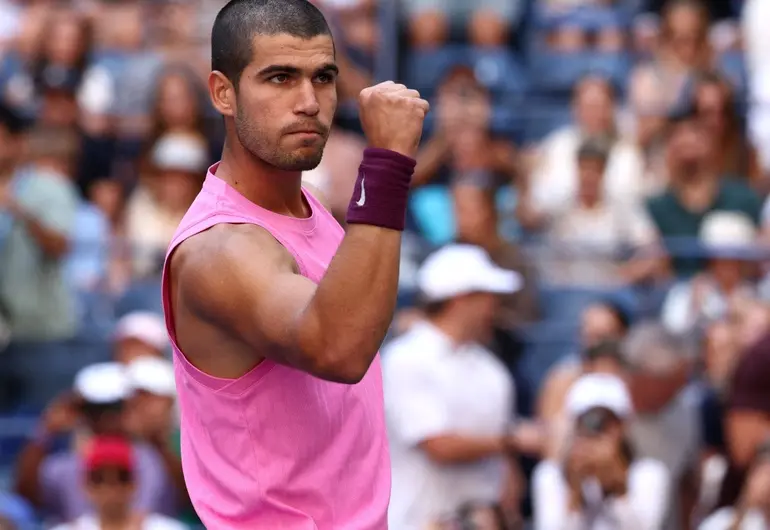 Alcaraz, que sigue sin dejarse un set en Nueva York, remó hasta mediado el segundo set para encontrar su primera pelota de break frente a Rinderknech, quien a los 30 años debutaba en unos octavos de Grand Slam.