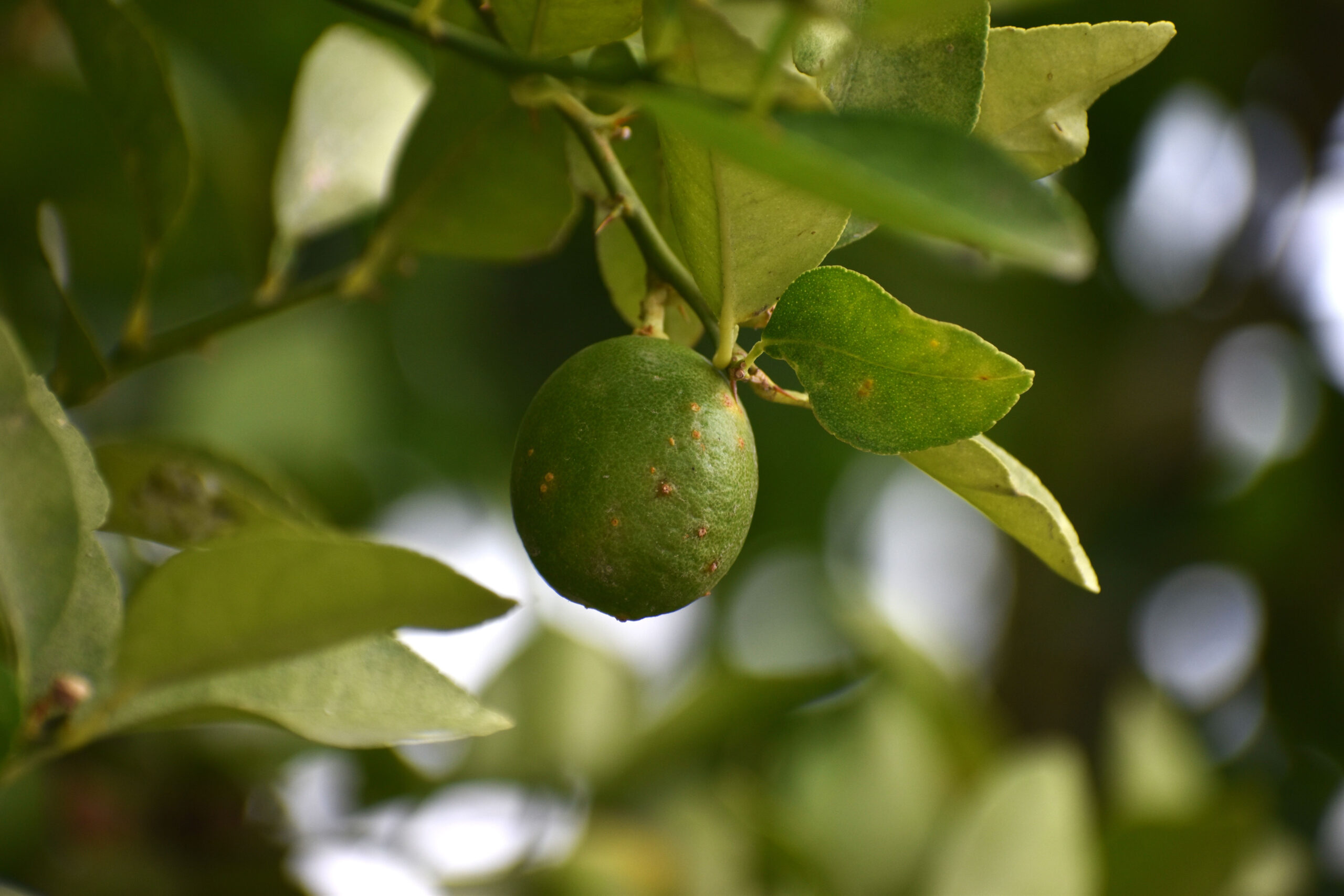 En el norte de Tamaulipas —Matamoros, Reynosa, Río Bravo, San Fernando y Valle Hermoso— personal técnico de Senasica y APHIS explora traspatios en áreas urbanas para detectar árboles que presenten síntomas de infección por Xanthomonas citri subsp. citri, bacteria causante del cancro bacteriano de los cítricos.