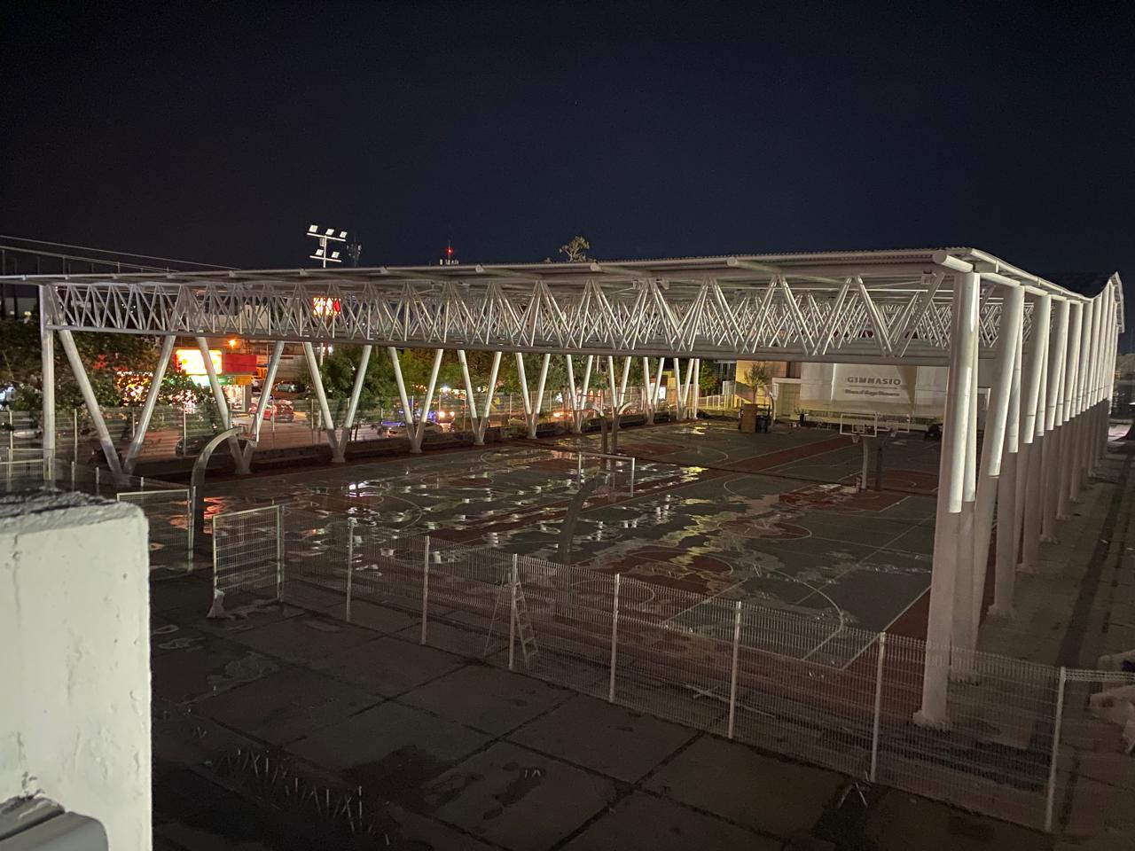 Se colocó una estructura de techumbre impresionante, pero se olvidó se rehabilitar la base de concreto y su sistema de drenaje pluvial.