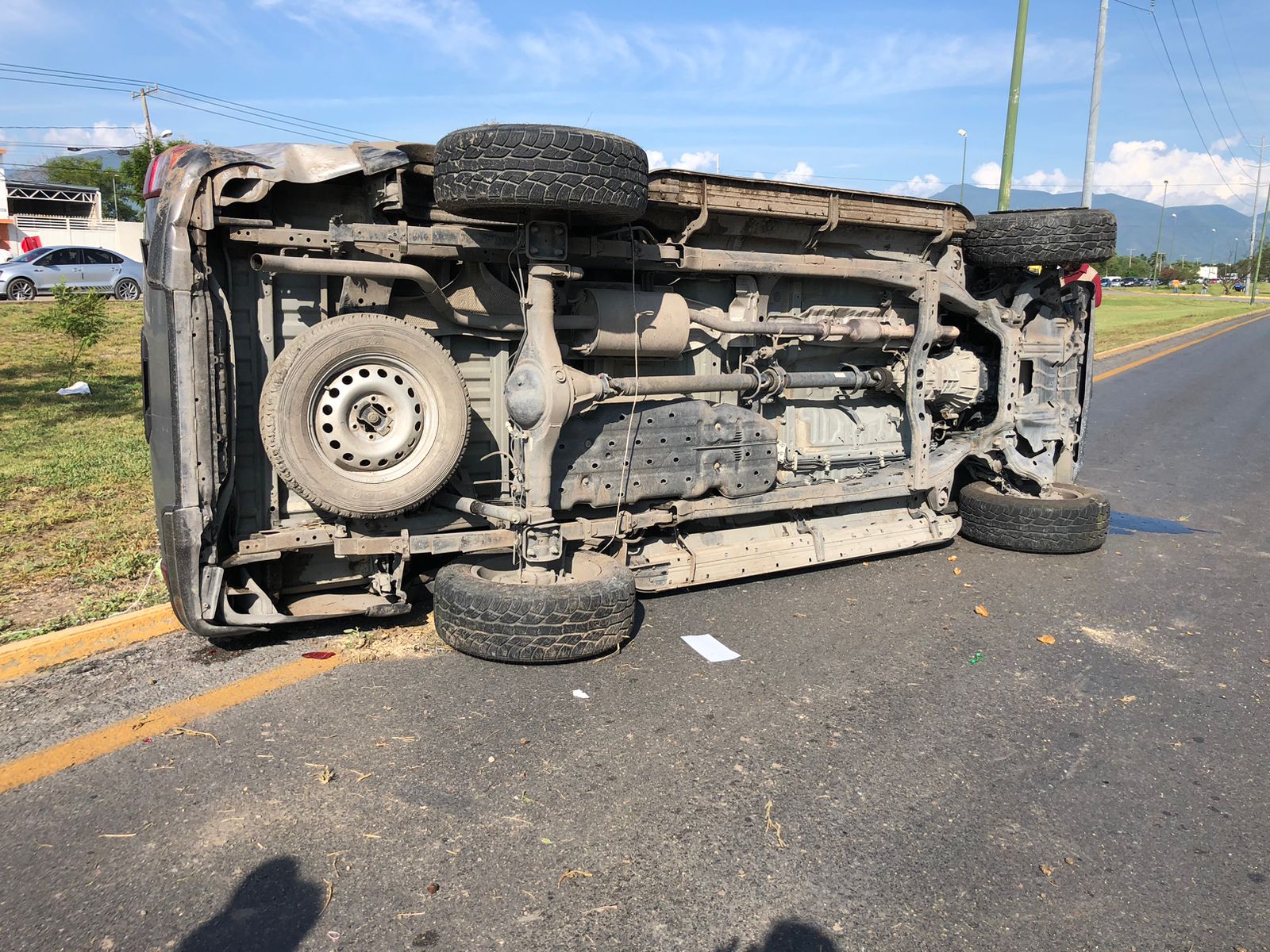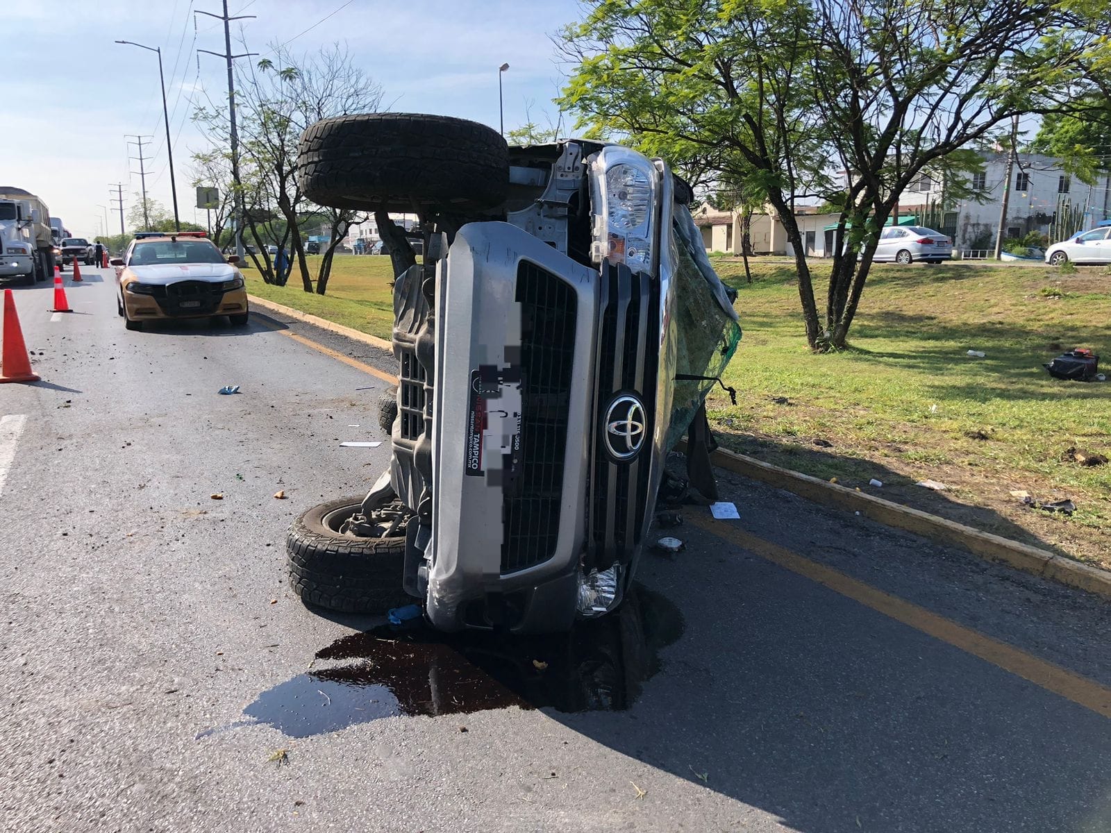 Fuera de control, la camioneta abandonó la superficie de rodamiento vehicular, cruzó el camellón y después de varias volteretas quedó en su posición final volcada sobre uno de sus costados en los carriles contrarios del libramiento Naciones Unidos.