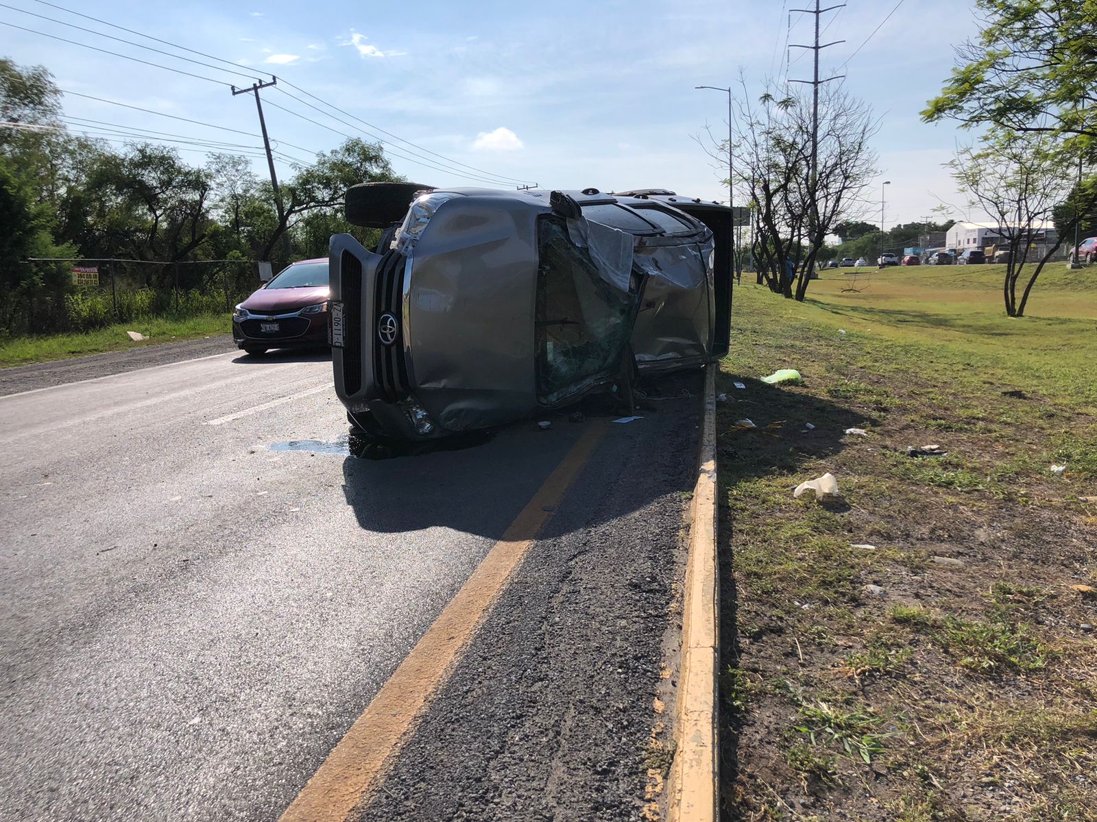 Al circular entre los entronques de las carreteras a Matamoros y Monterrey, un camión tipo Torton les dio un cerrón, lo que provocó que el conductor de la camioneta Hilux perdiera el control del vehículo.