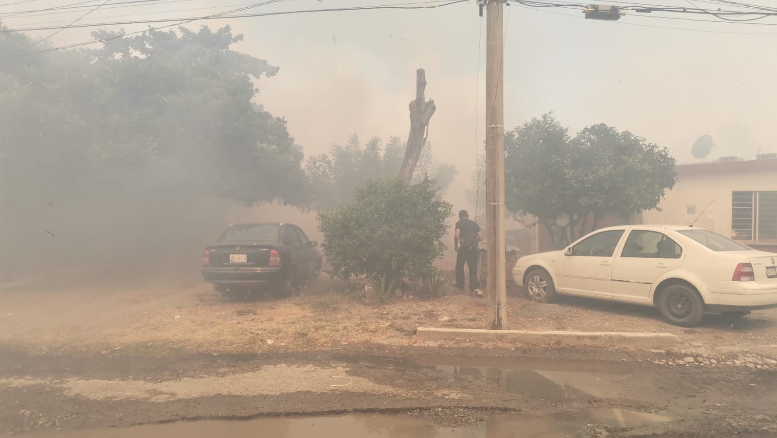 El incendio cubrió con una densa humareda las viviendas ubicadas en la avenida Tenochtitlán hasta el cruce de la calle Cantarranas del Fraccionamiento México.