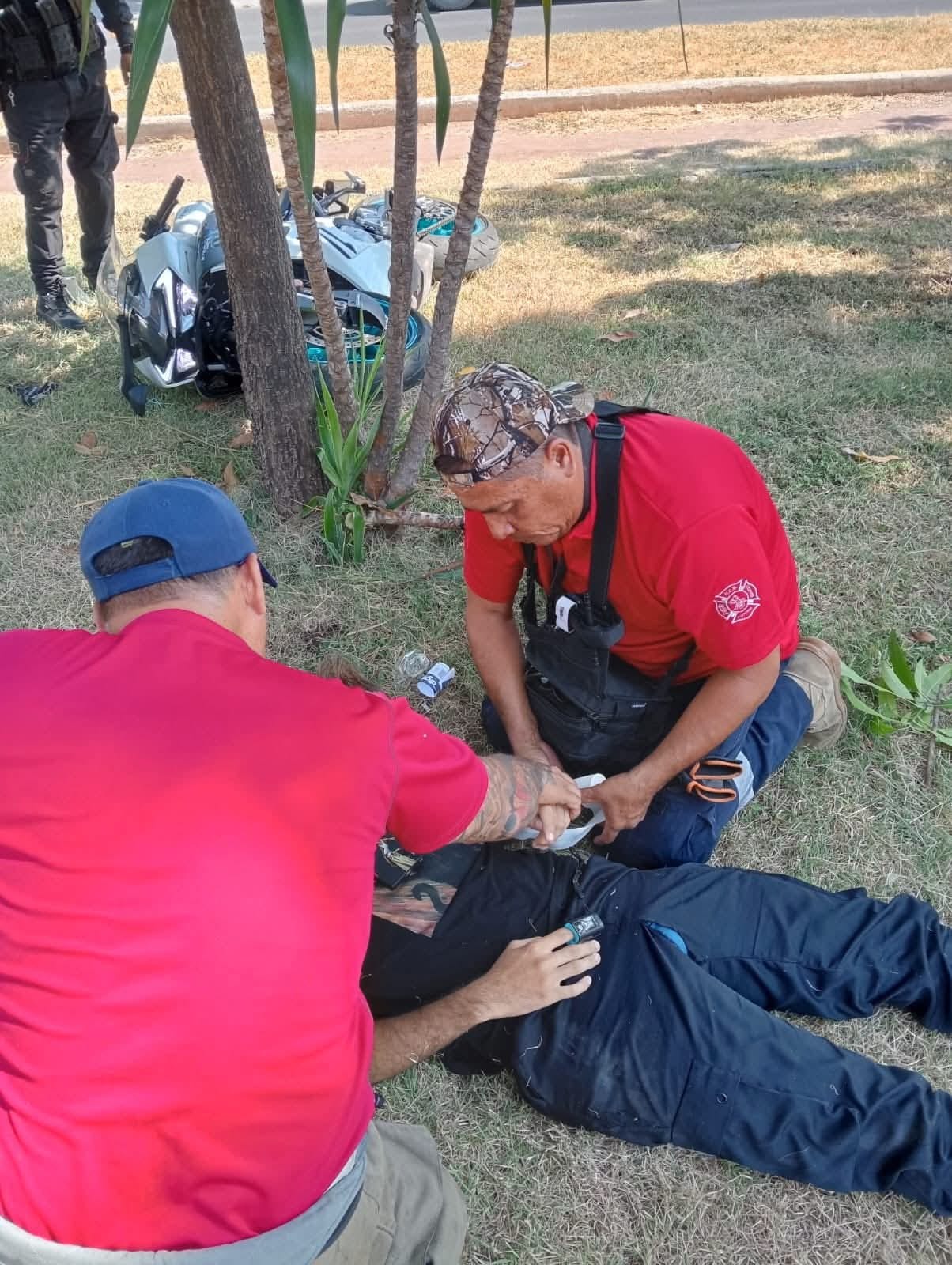 Ciudad Victoria, Tamaulipas (13 de agosto de 2025).- Con probable fractura en la muñeca izquierda resultó un motociclista tras impactarse contra una palma.