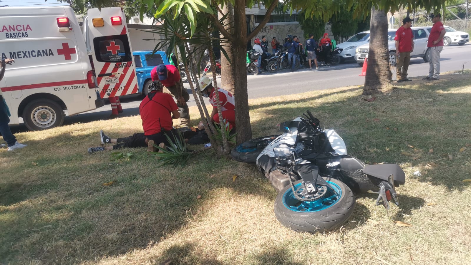 Paramédicos de Protección Civil Victoria proporcionaron los primeros auxilios al joven, quien posteriormente fue trasladado a un centro hospitalario por una ambulancia de Cruz Roja para recibir atención médica especializada.