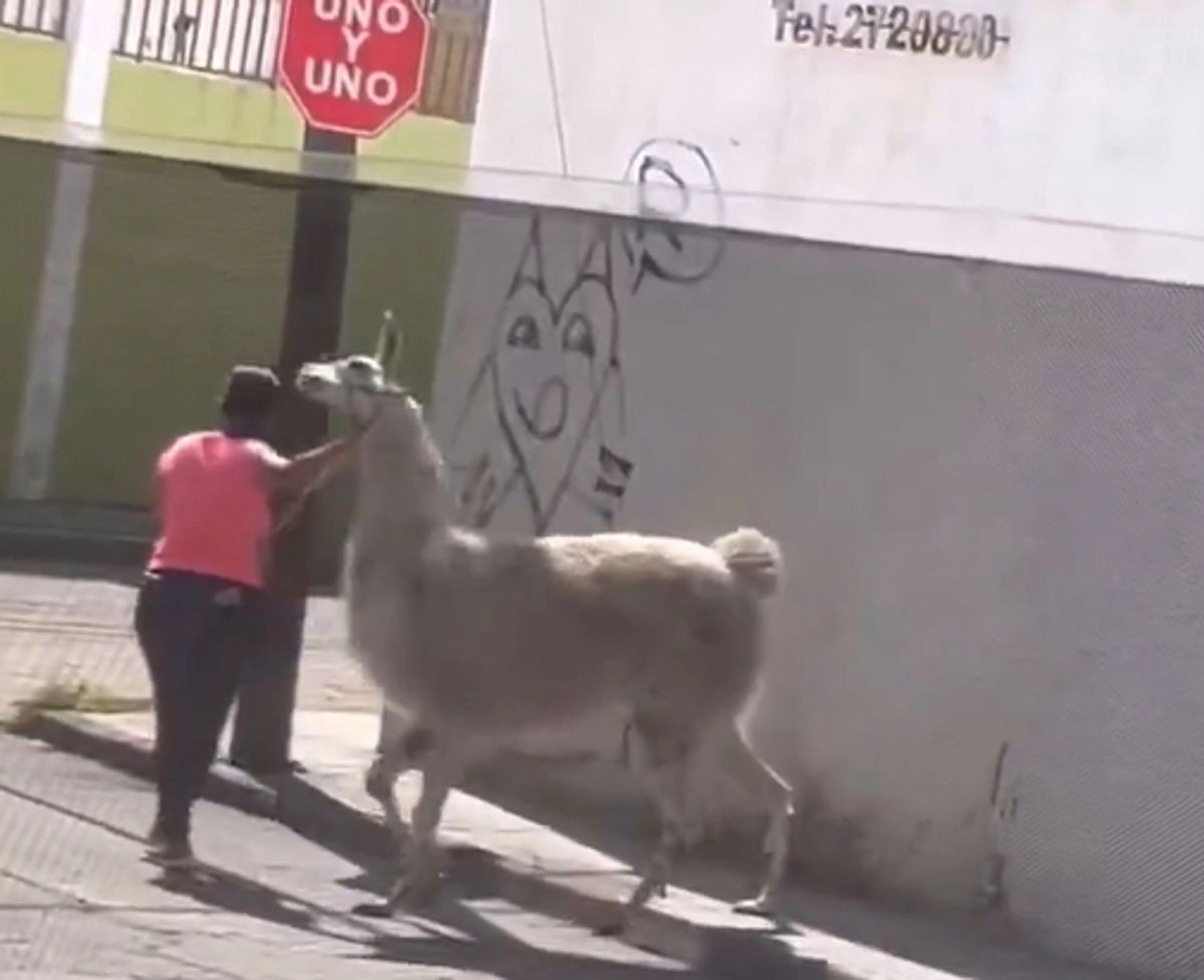 Según el video, de escasos 14 segundos de duración y que fue compartido por redes sociales, aparece una joven al momento de conducir al animal con una correa sujetada al collar que tenía la llama.
