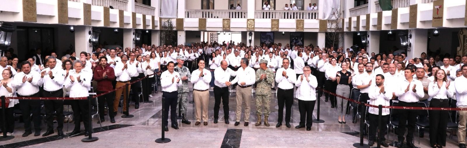Como parte de la ceremonia cívica, el juramento a la bandera estuvo a cargo de Rómulo Pérez Sánchez, subsecretario de Enlace Legislativo, mientras que, Armando Núñez Montelongo, subsecretario de Transporte Público, y Tomás Gloria Requena, subsecretario de Gobierno, dieron lectura a las efemérides de la semana.