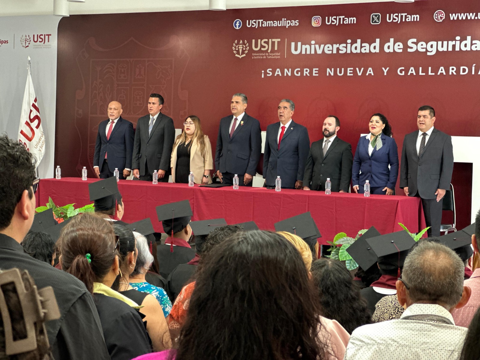En compañía del rector, Jorge Lumbreras Castro, así como directivos de la universidad y principalmente familiares de los hoy profesionistas, Pancardo Escudero dijo que esta institución tiene un prestigio nacional e internacional porque además de formar al personal policial y de procuración de justicia, también a universitarios a través de sus tres licenciaturas que pronto serán cuatro, además de brindar estudios de posgrado.