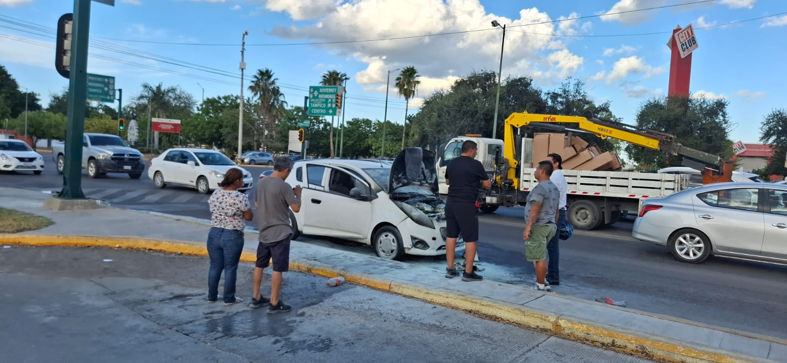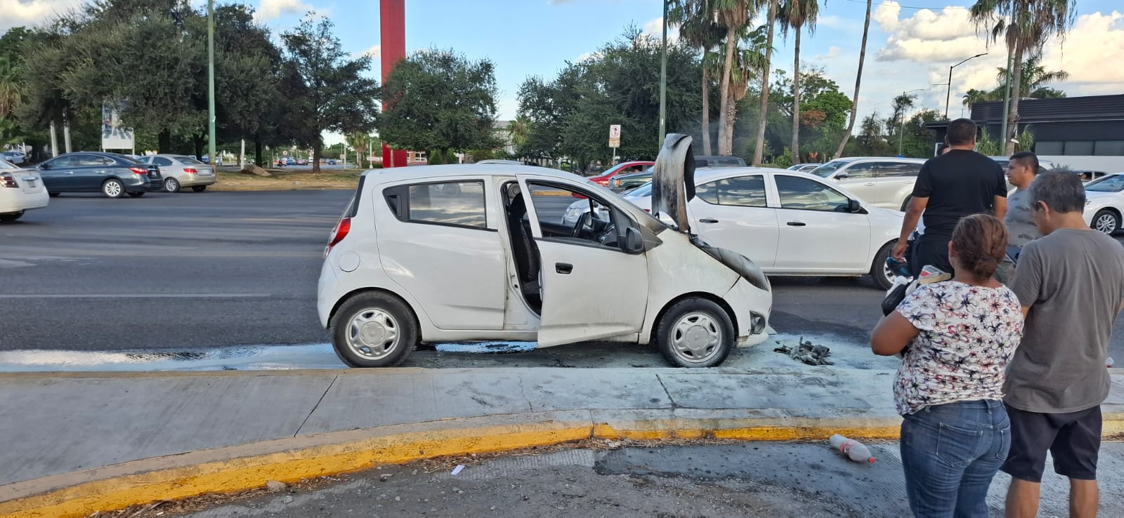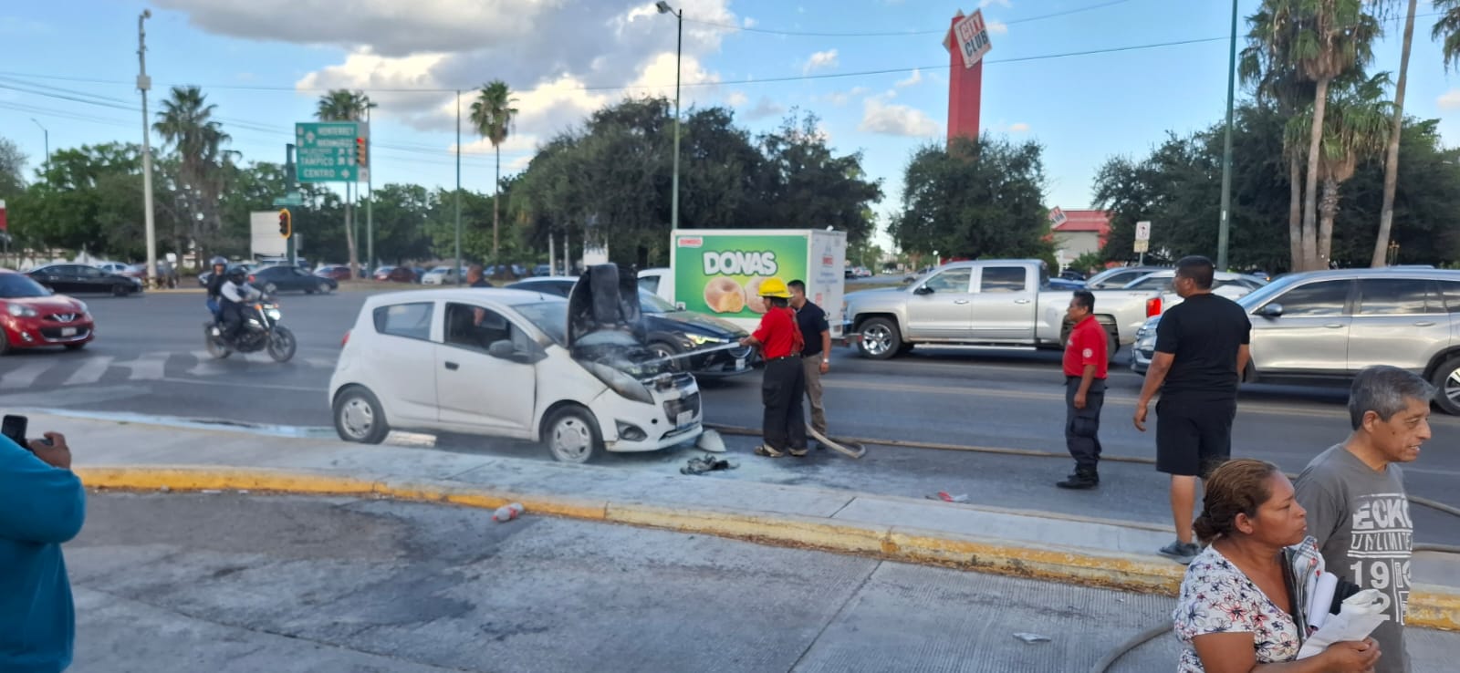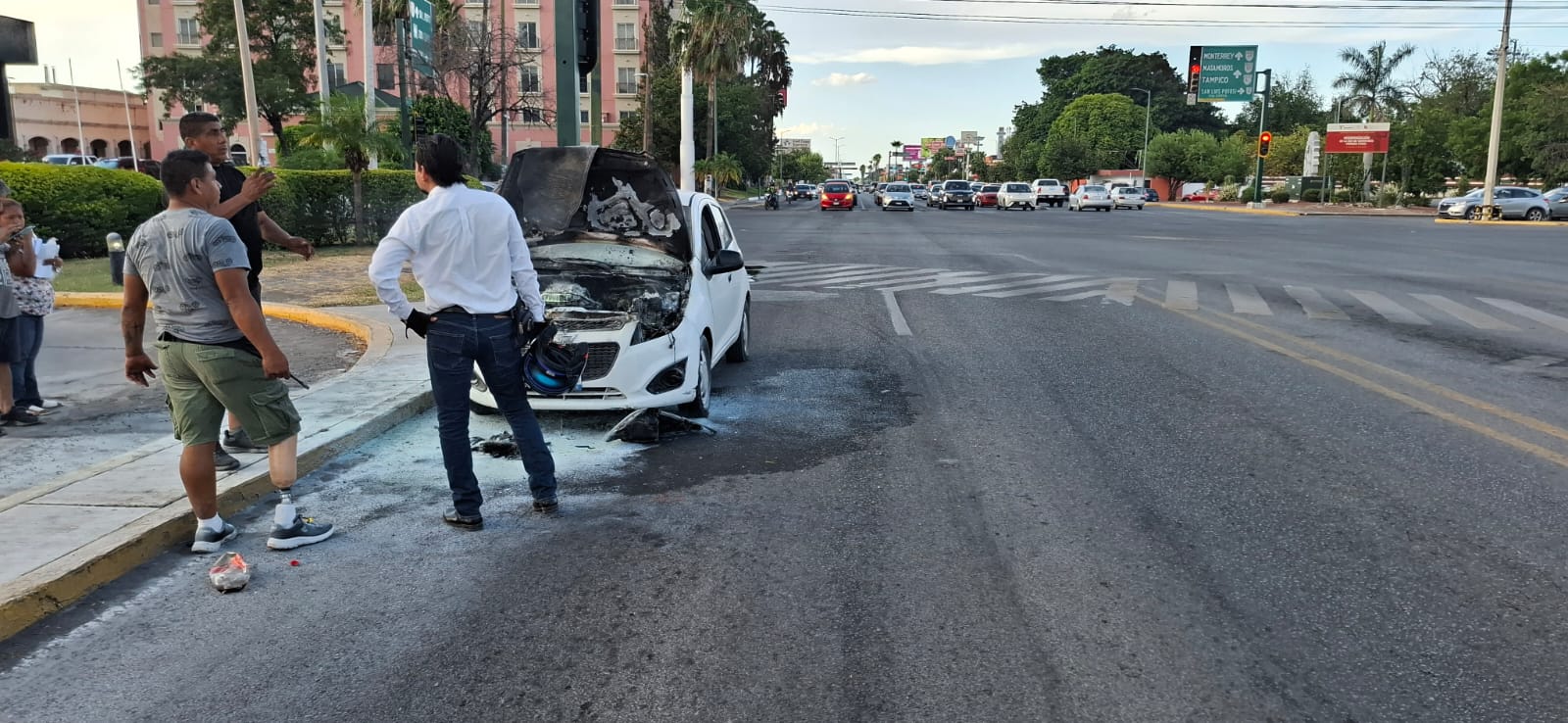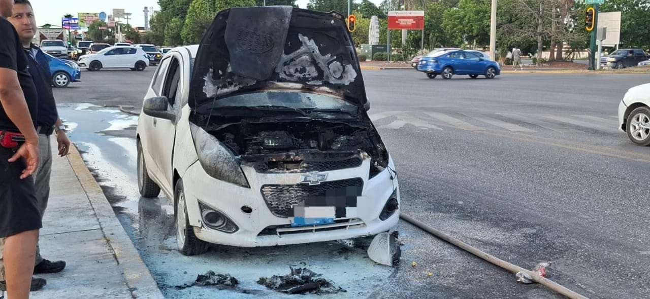 El reporte al número de emergencias 911 se originó después que un vehículo de la marca Chevrolet tipo Spark que circulaba en sentido de norte a sur por el Bulevar ulevar Tamaulipas se incendió al pasar el Bulevar Adolfo López Mateos.