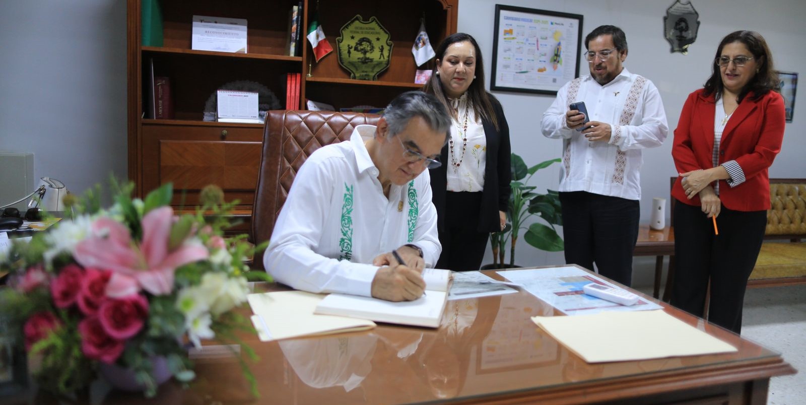 Además, recorrió las instalaciones del plantel y firmó el libro de visitantes distinguidos: “Con mucho orgullo y emoción hoy acudo a secundar la obra de mis padres. A terminar el gimnasio que él inició en esta extraordinaria escuela normal, cimiento de muchos tamaulipecos ilustres sobre los cuales hoy ponemos nuestra esperanza de una mejor sociedad”, escribió.