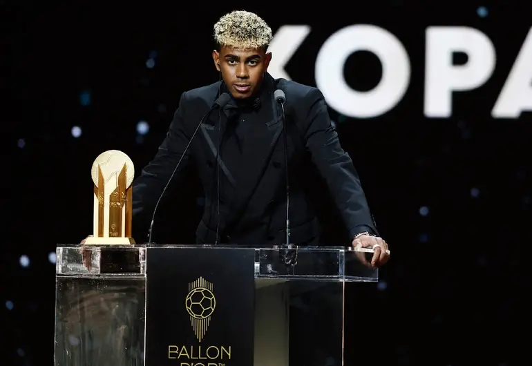 La joven estrella Lamine Yamal fue el primero de los futbolistas en subir al estrado de la gala del Balón de Oro después de recibir por segundo año consecutivo el trofeo Kopa, la distinción que se da al mejor joven del mundo por parte de la UEFA y la revista France Football.