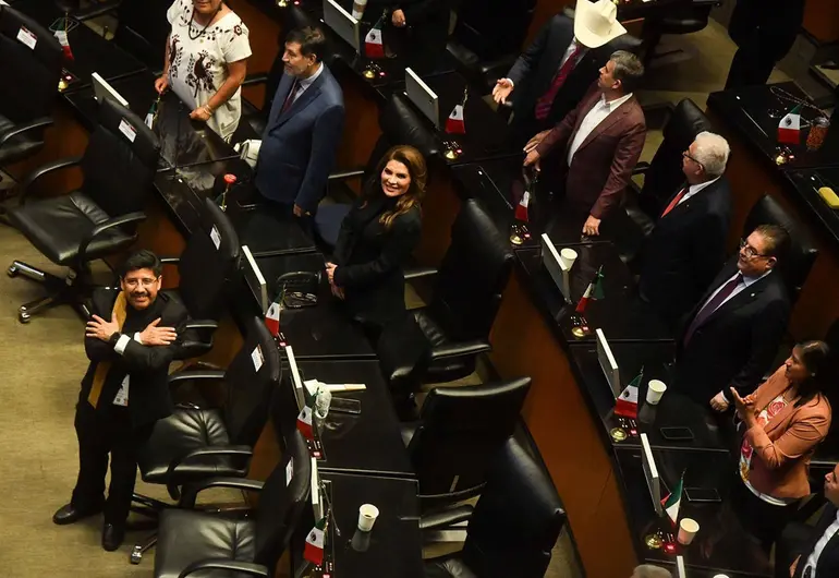 Laura Itzel Castillo, presidenta del Senado, tomó protesta constitucional a Hugo Aguilar Ortiz, Lenia Batres Guadarrama, Yasmín Esquivel Mossa, Loretta Ortiz Ahlf, María Estela Ríos González, Giovanni Azael Figueroa Mejía, Irving Espinosa Betanzo, Arístides Rodrigo Guerrero García y Sara Irene Herrerías Guerra, como ministros de la Suprema Corte.