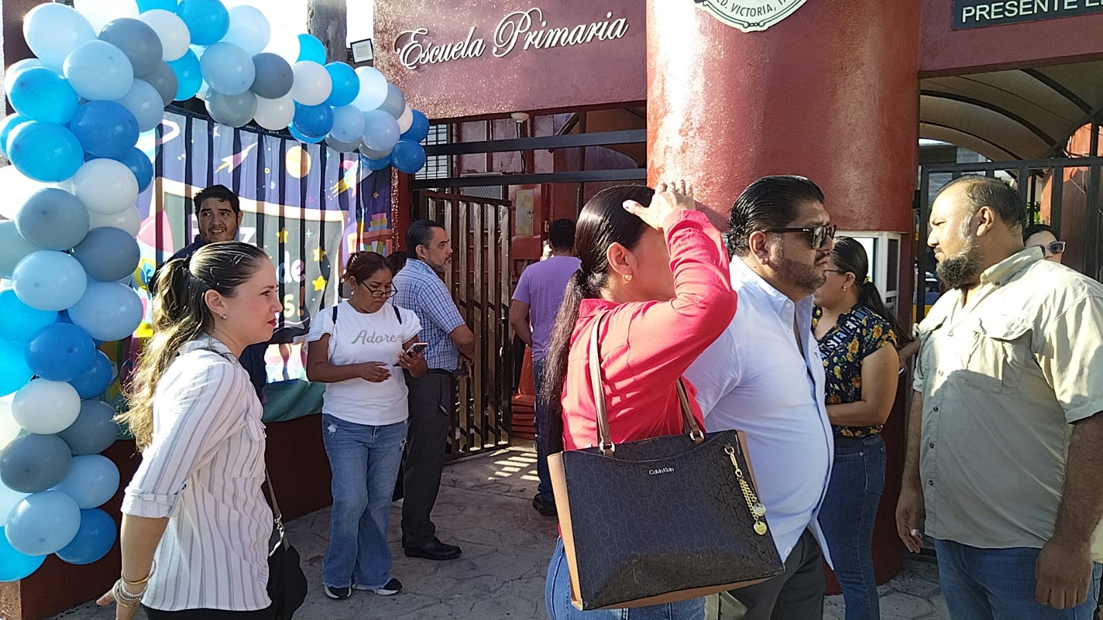Ciudad Victoria, Tamaulipas (1 de septiembre de 2025).- Este lunes, en el inicio del ciclo escolar 2025-2026, padres de familia de la Escuela Primaria Club de Leones se manifestaron afuera de dicho plantel escolar para exigir que los 18 grupos de la institución educativa cuenten con un maestro frente al aula.