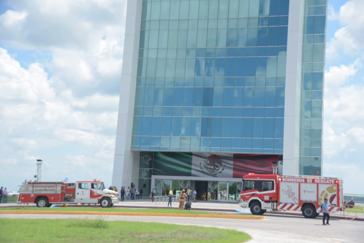 En un simulacro por incendio en el piso 23 de la Torre Bicentenario, fueron evacuadas en 13 minutos con 26 segundos dos mil 34 empleados y 63 visitantes para hacer un total de dos mil 097 personas evacuadas.