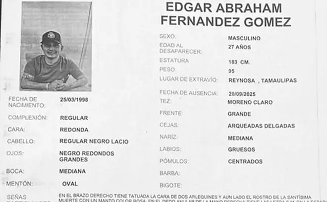 La víctima fue identificada como Edgar Abraham Fernández Gómez, de 27 años de edad, quien residía en el fraccionamiento Ventura de esa ciudad fronteriza. Los restos fueron reclamados por su madre, Dinora Gómez Balderas, quien había denunciado su desaparición ante las autoridades.