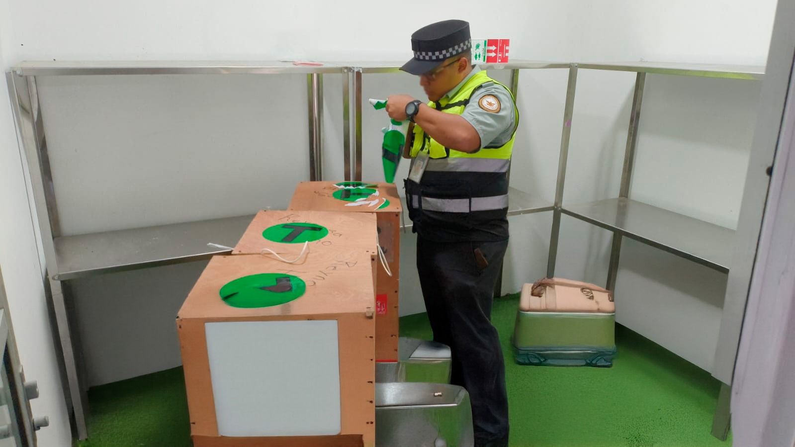 Los integrantes de la Guardia Nacional identificaron tres cajas de madera, con orificios a los costados, donde se encontraban las tres aves, procedentes del municipio de Tekantó, Yucatán.