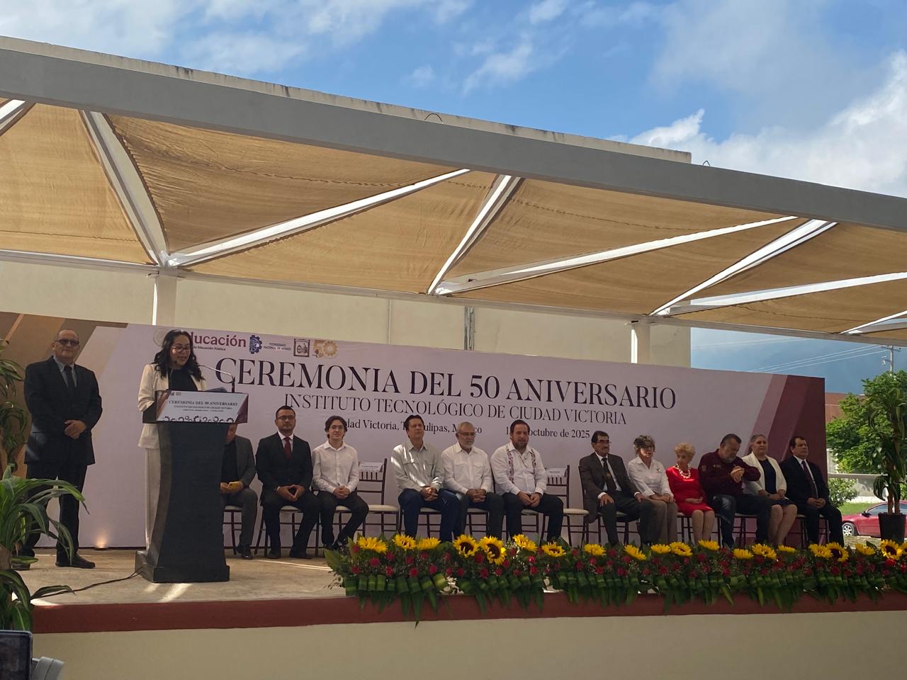 Mientras tanto, el secretario de Educación en la entidad, Miguel Ángel Valdez García, felicitó a nombre del gobernador Dr. Américo Villarreal Anaya a la comunidad tecnológica ahí reunida por los 50 años de vida institucional y ser un referente en la educación superior en esta ciudad.