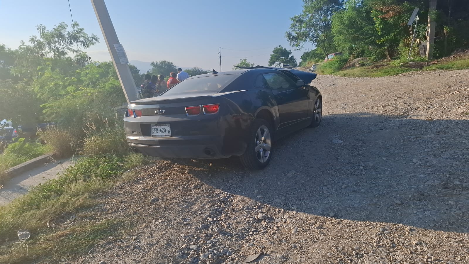 Fue un vehículo de la marca Chevrolet tipo Camaro el cual quedó a un costado de la superficie de rodamiento vehicular con severos daños materiales tras impactarse contra una camioneta Pick Up que remolcaba una revolvedora conocida como “trompo” utilizado para llevar a cabo trabajos de albañilería.