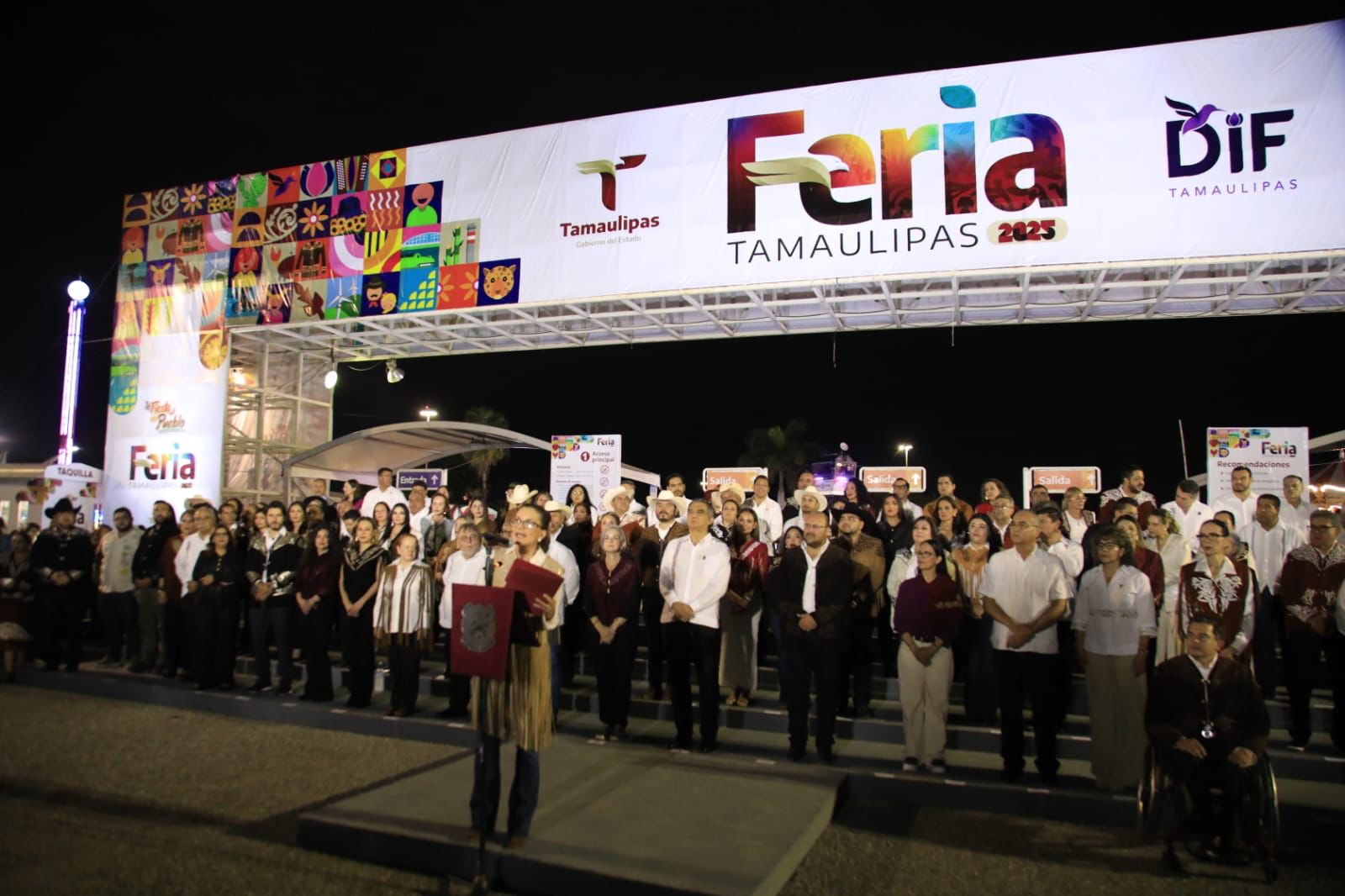 “Como usted lo instruyó, señor gobernador, nuestra feria es un encuentro con nuestra identidad, un escaparate para el talento de nuestros emprendedores, artistas, gastronomía tradicional, productores, ganaderos, y tantas y tantos tamaulipecos que con orgullo vienen desde nuestras bellísimas regiones a compartir lo mejor de su tierra”, mencionó.