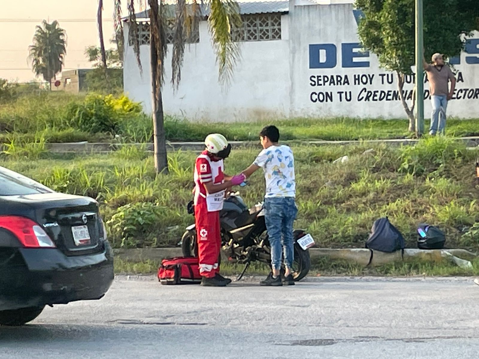 Para atender a la joven estudiante, y al motociclista, acudieron al lugar paramédicos de Cruz Roja Mexicana a bordo de la ambulancia 304.