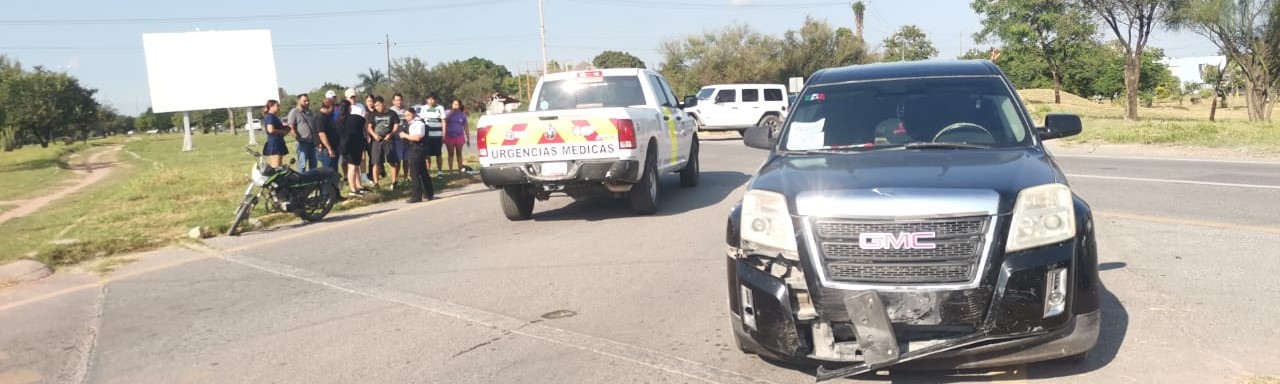 Un motociclista fue trasladado a un hospital después de ser arrollado por una camioneta cuya conductora ignoró un disco metálico de alto al llegar al libramiento Naciones Unidas.
