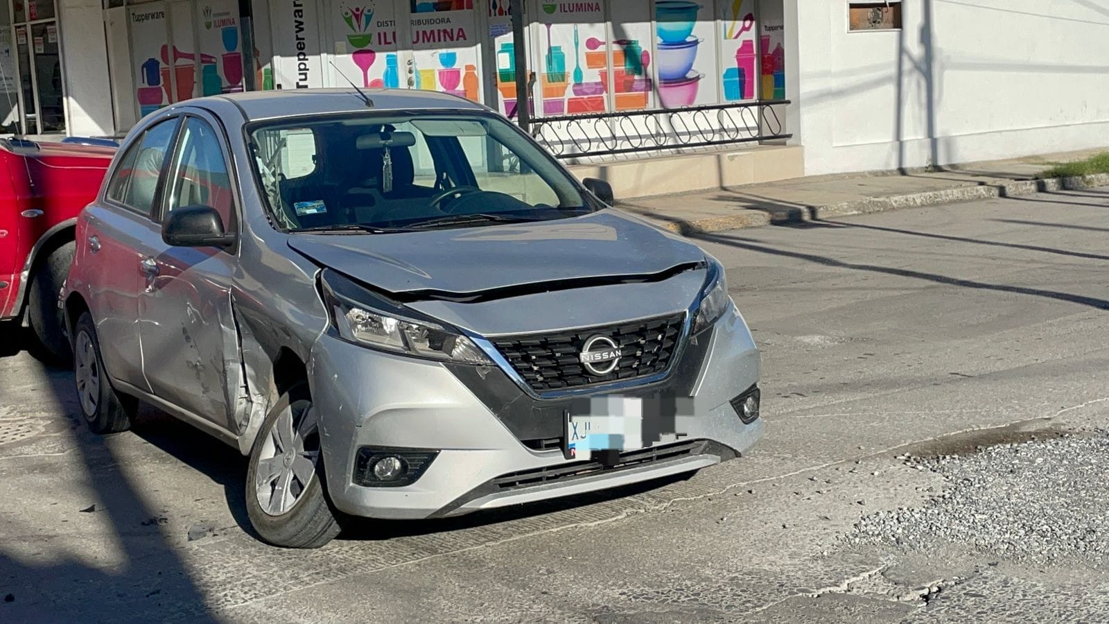 El accidente ocurrió esta mañana cuando un automóvil de la marca Nissan tipo March tripulado por una persona del sexo femenino circulaba por la calle Juárez en sentido de poniente a oriente.
