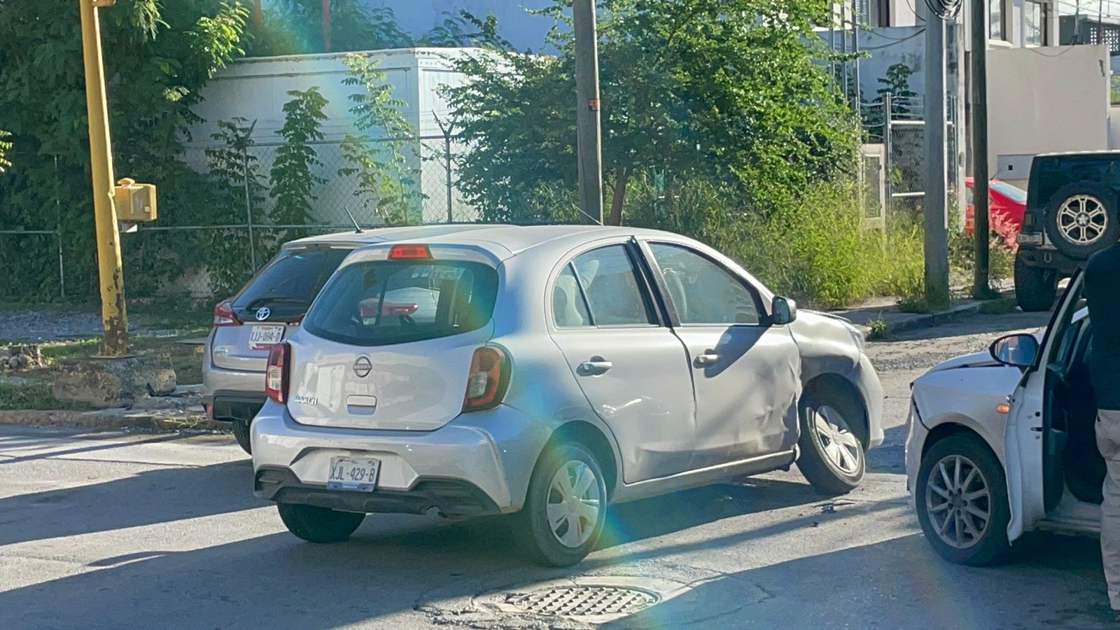 Al llegar al crucero con la calle 21, el automóvil March fue impactado por un costado por un automóvil Ibiza con placas del estado de Nuevo León.