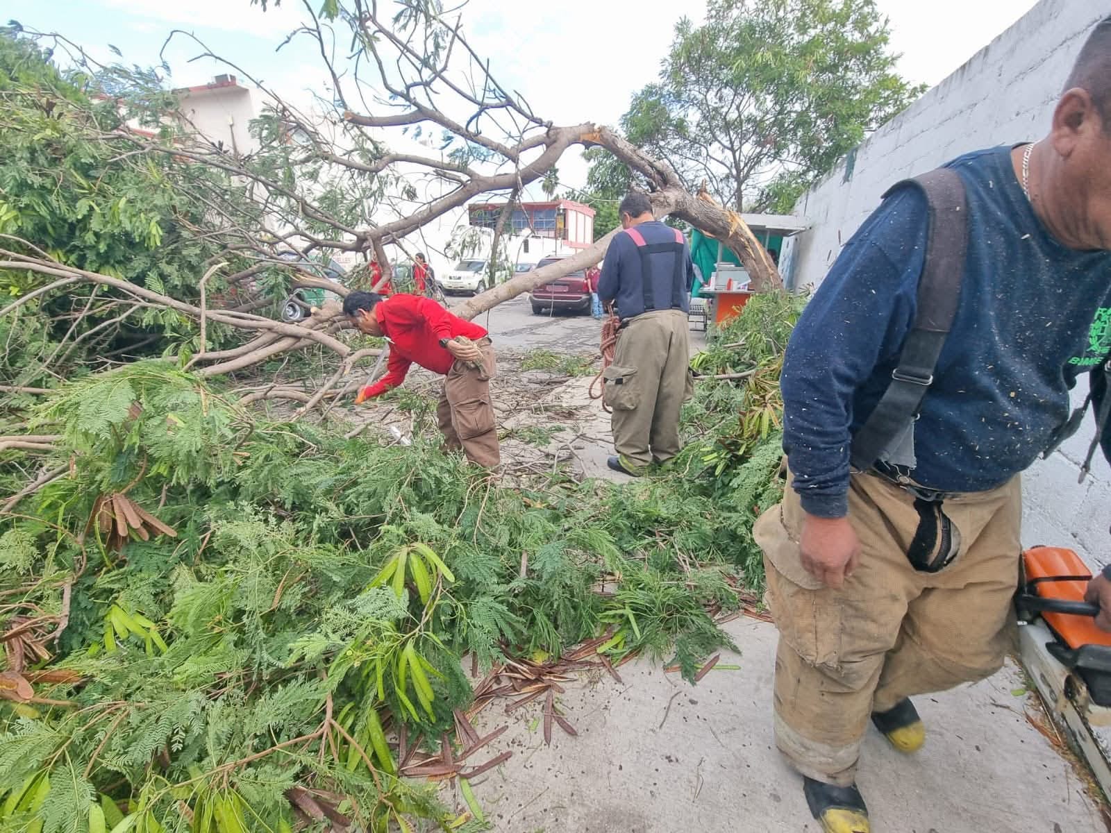 En algunos casos, los árboles provocaron daños a vehículos estacionados y afectaciones al tendido eléctrico, por lo que se trabajó en conjunto con Comisión Federal de Electricidad (CFE) para eliminar riesgos y restablecer la seguridad en las zonas afectadas.