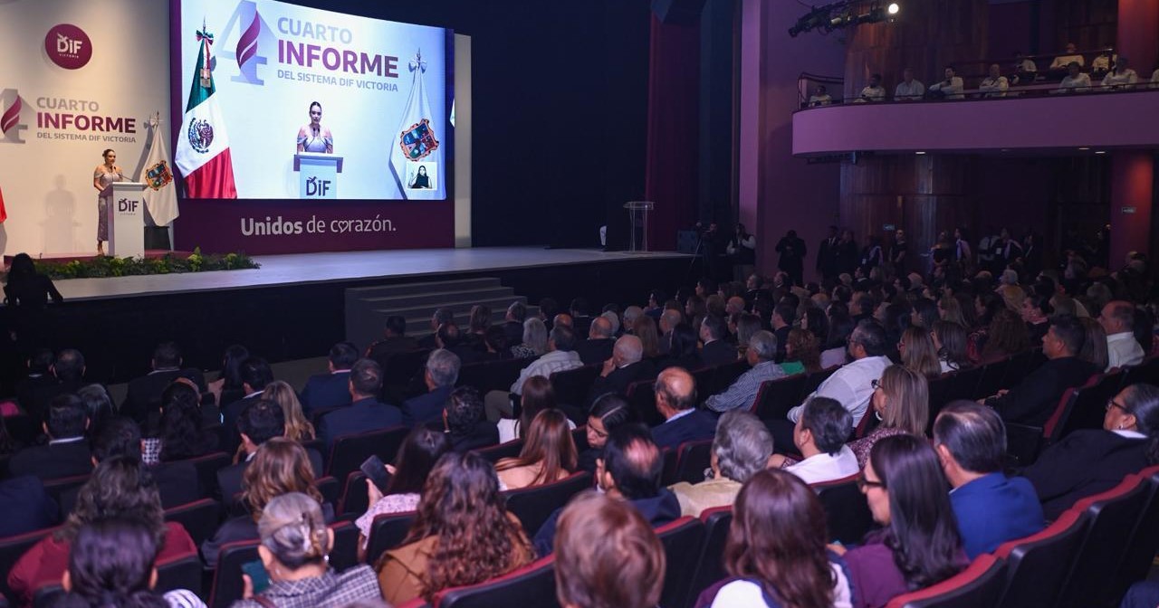 Cd. Victoria, 29 de octubre 2025. – La presidenta del Sistema DIF Victoria Lucía Rodríguez presentó su cuarto informe de actividades, en el que reiteró seguirá trabajando por el bienestar de las familias victorenses.