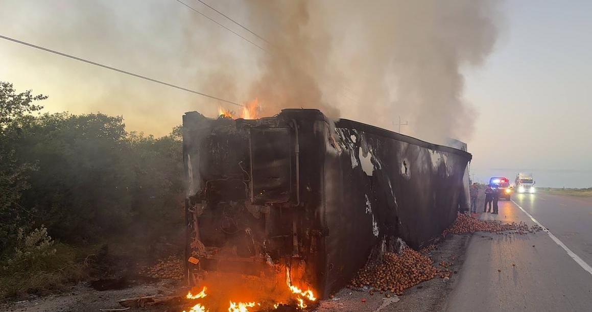Se incendia tractocamión en carretera Victoria-Matamoros km 119