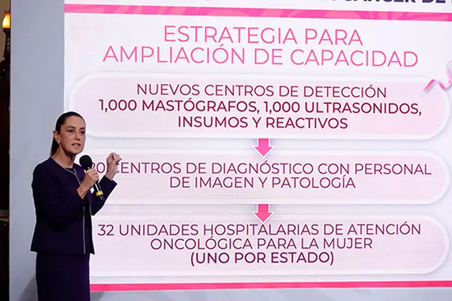 En México, entre la detección y la atención pasan muchos meses. Vamos a cambiar eso: las mujeres deben recibir diagnóstico y tratamiento inmediato, porque el cáncer de mama detectado a tiempo es curable”, señaló.
