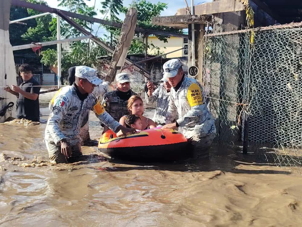 Personal de la Secretaría de la Defensa Nacional, Secretaría de Marina, Guardia Nacional, Secretaría de Infraestructura, Comunicaciones y Transportes, Coordinación Nacional de Protección Civil, Comisión Nacional del Agua, y Comisión Federal de Electricidad, participan activamente en las zonas dañadas, reforzando los trabajos de los gobiernos estatales y municipales, a fin de atender a la población y restablecer los servicios básicos.