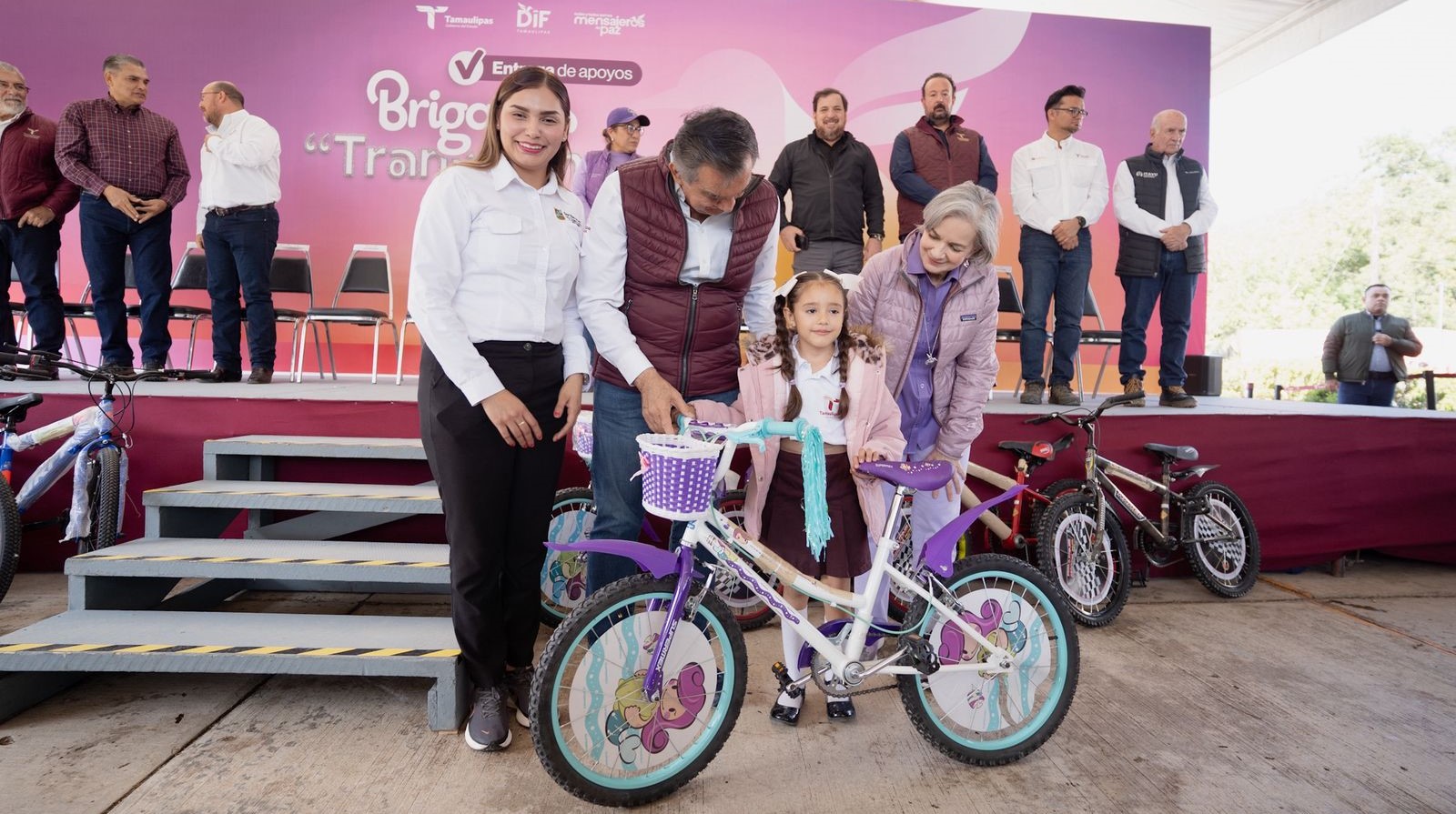 En un segundo momento, realizado en la plaza principal, se otorgaron 112 bicicletas a alumnas y alumnos de educación básica para brindarles un traslado más seguro hacia sus escuelas. Esta entrega fue acompañada por representantes de los tres órdenes de gobierno, quienes respaldaron las acciones de bienestar impulsadas a través de las brigadas Transformando Familias.