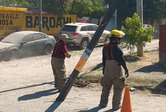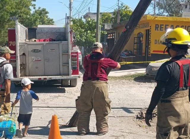 Elementos del Cuerpo de Bomberos acudieron al llamado ciudadano que alertaba sobre un poste a punto de caer en la colonia Azteca, específicamente en la calle 16 de Septiembre, entre Chimaplo y Huituahui.