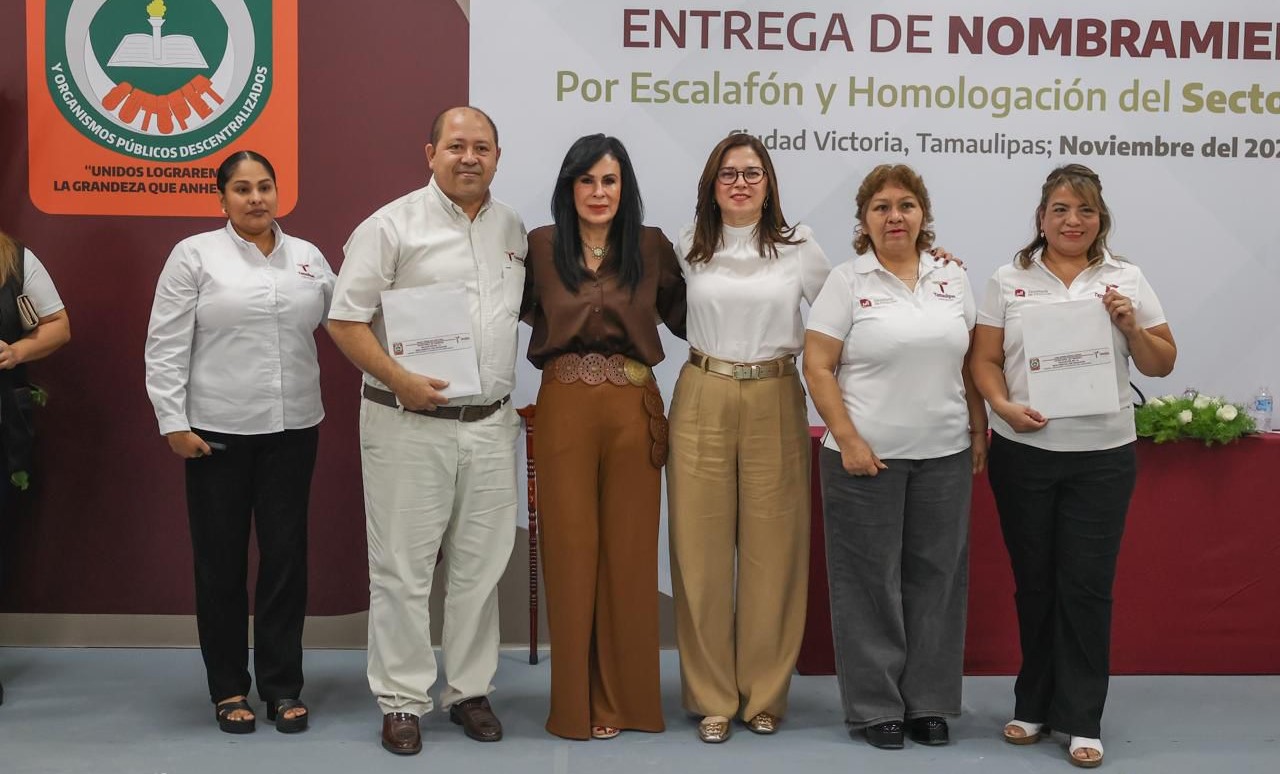 Ciudad Victoria, Tamaulipas.- Con la finalidad de reconocer la trayectoria y el esfuerzo del personal del Gobierno del Estado, se entregaron 108 nombramientos a las y los servidores públicos que accedieron a una categoría sindical durante el presente año, mediante movimiento escalafonario o por asignación preferente de plaza a hijos o cónyuges de trabajadores de base sindical. Cabe señalar que estas no son plazas de nueva creación, sino un reconocimiento a la trayectoria de los trabajadores.