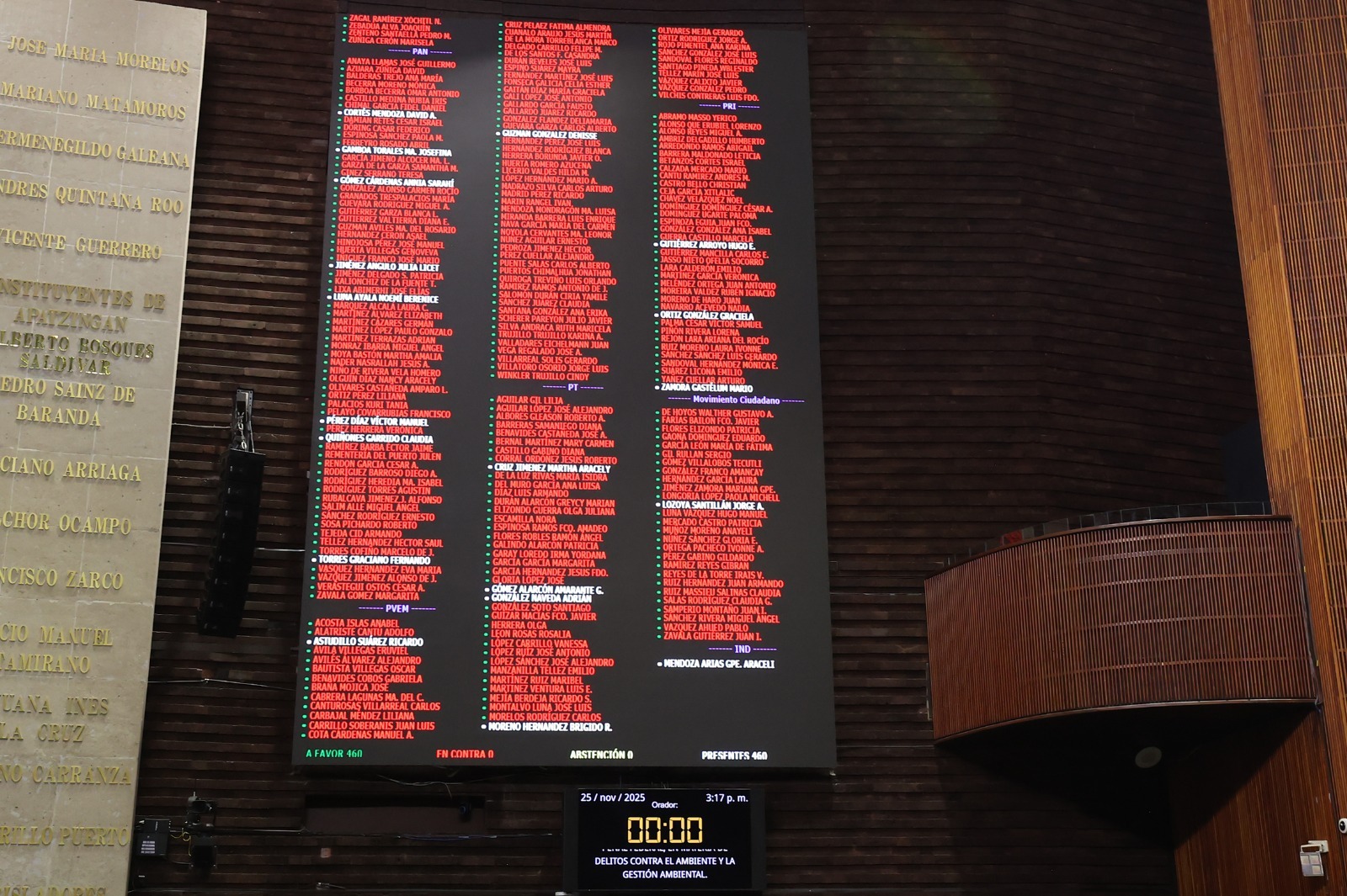 Se emitieron 452 votos en lo general, y 460 votos en lo particular con cambios al dictamen; se aceptó la reserva presentada por el diputado Ricardo Monreal Ávila (Morena) a los artículos 418 y 420 Quáter, a nombre de los coordinadores de los grupos parlamentarios, “a fin de hacer más duras y más rígidas las sanciones contra todo aquel talador, contra todo aquel que está violando y destruyendo los bosques del país”.