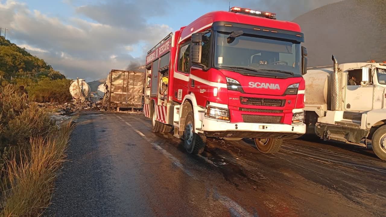 Protección Civil Tamaulipas en coordinación con los municipios de Palmillas, Tula y Jaumave, acudieron al lugar a bordo de varias motobombas debido a que tras el choque se incendiaron los tractocamiones en el tramo de la carretera Tula – Palmillas a la altura del kilómetro 85.
