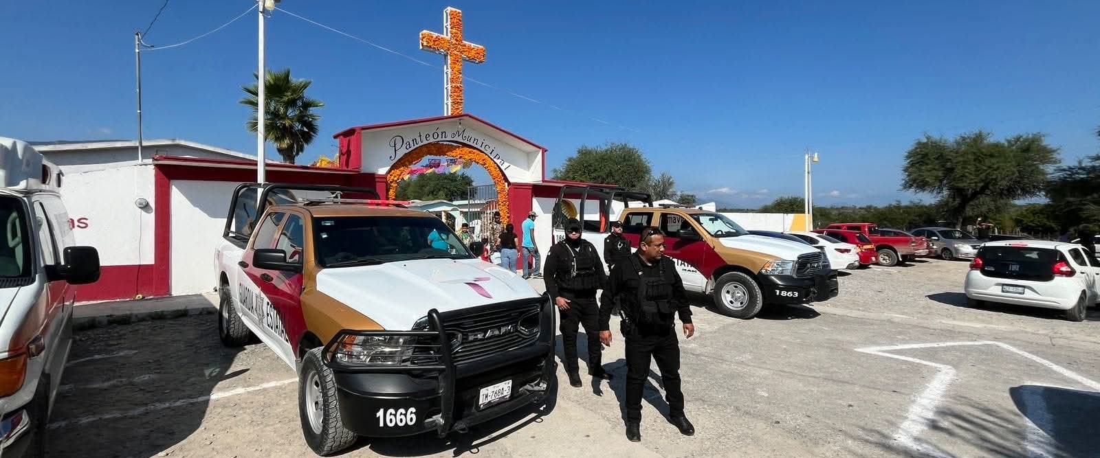 Ciudad Victoria, Tamaulipas.- Con motivo de la conmemoración del Día de Muertos, la Secretaría de Seguridad Pública de Tamaulipas (SSPT) lleva a cabo un operativo especial en los 43 municipios con la participación de más de dos mil 500 elementos de la Guardia Estatal, quienes realizan labores de vigilancia en panteones, carreteras y zonas de alta afluencia.