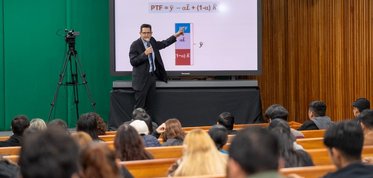 Ante docentes y estudiantes reunidos en el Centro de Excelencia de la UAT, el ponente resaltó que el crecimiento de la productividad regional es clave para lograr un incremento económico sostenido en el largo plazo, mejorar los salarios, aumentar la competitividad y reducir los precios, lo cual, contribuirá a generar un mayor valor económico y bienestar social.