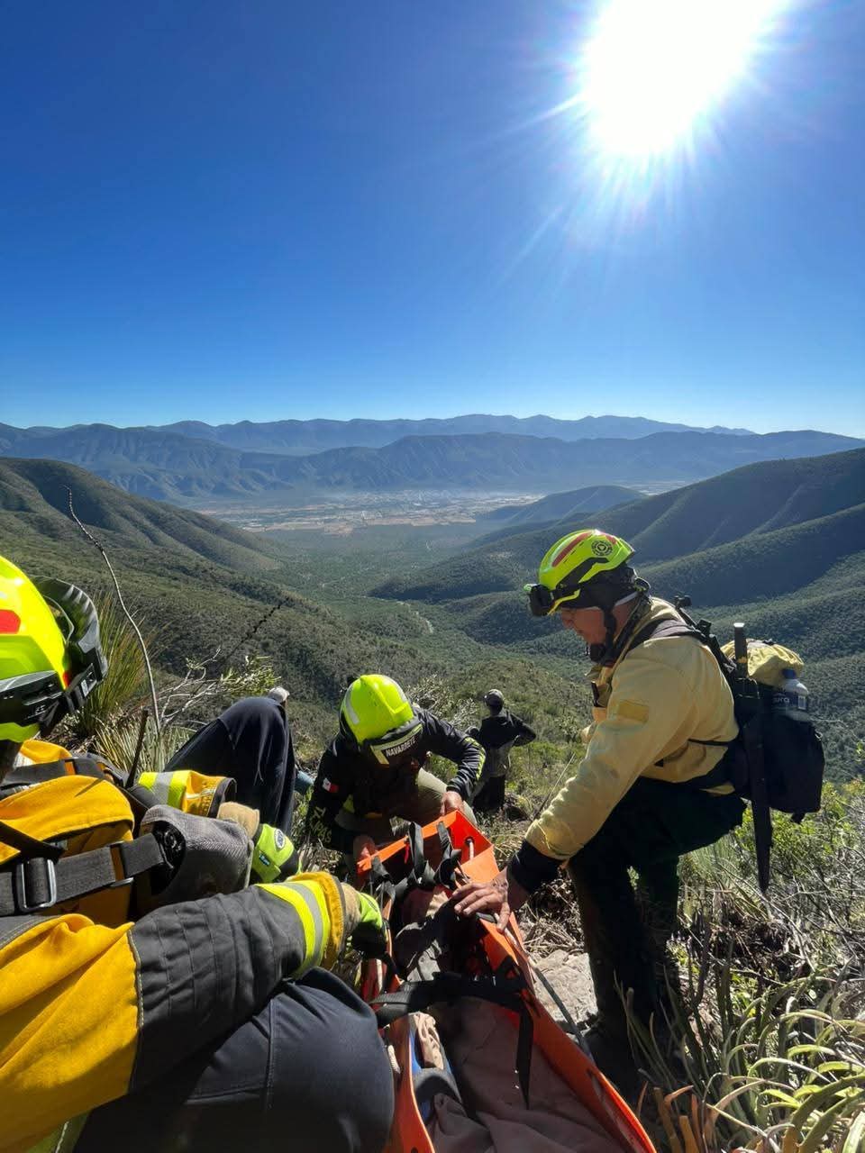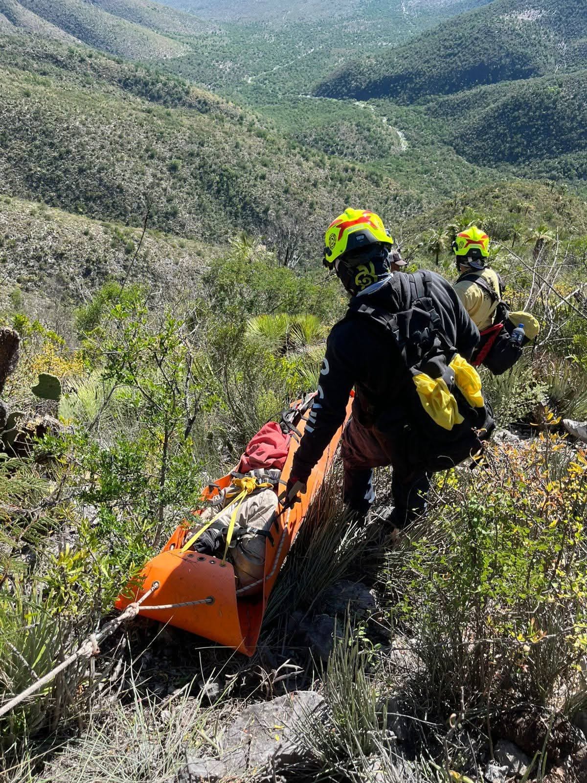 Bustamante, Tamaulipas (7 de noviembre de 2025).-  Personal de Protección Civil Tamaulipas llevó a cabo el rescate en la sierra de Bustamante de una persona que sufrió un accidente mientras se encontraba realizando labores de pastoreo.
