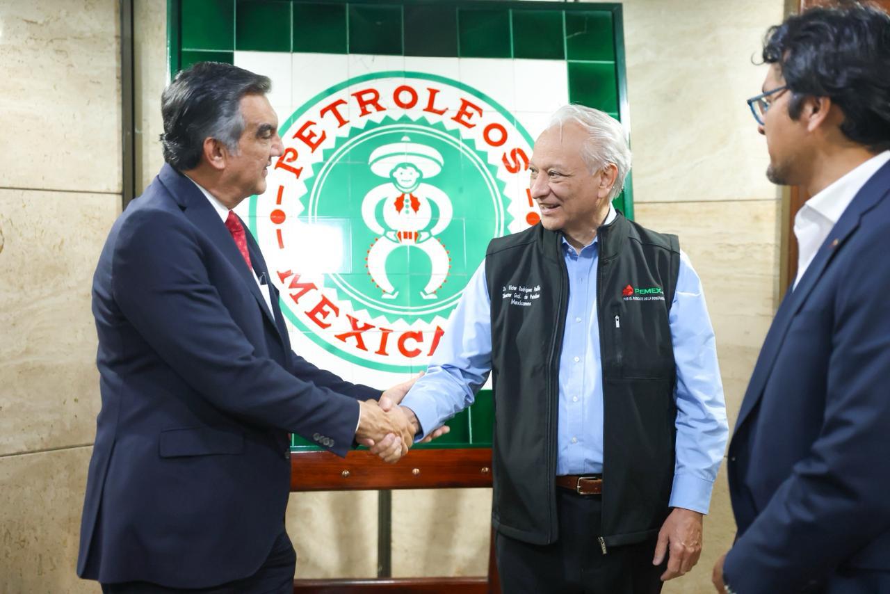 Ciudad de México. – Con el propósito de abordar temas referentes a proyectos estratégicos para el desarrollo de Tamaulipas, el gobernador Américo Villarreal Anaya sostuvo una importante reunión de trabajo, este viernes, con el director general de Petróleos Mexicanos, Víctor Rodríguez Padilla.